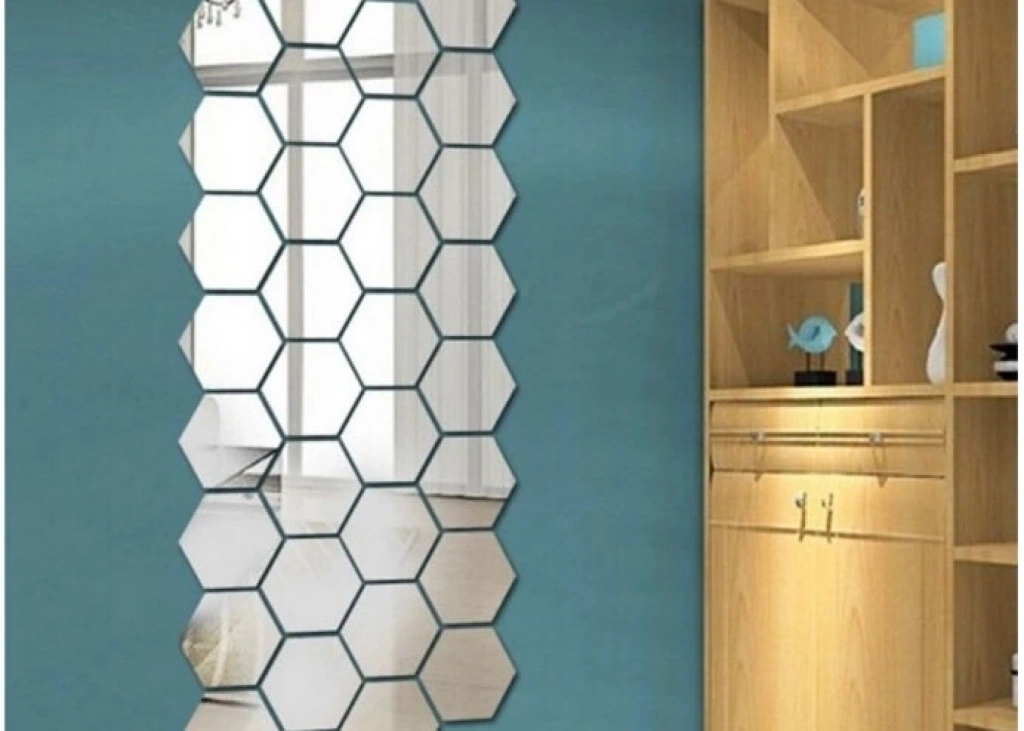 12 Adet Yapışkanlı Dekoratif Akrilik Ayna Altıgen