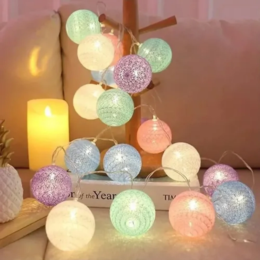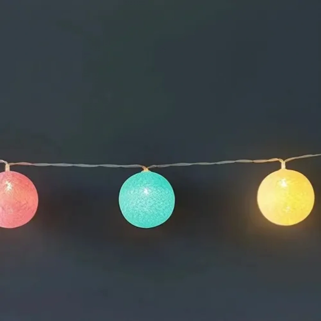 2m 10 LED Renkli Top Lamba: Büyük Figürler, Yumuşak Gün Işığı AmbiyansıMekânınıza hem renk hem de sıcaklık katın! 2 metre uzunluğunda, 10 adet büyük boy (6 cm) Renkli Top figürü içeren bu dekoratif zincir, yumuşak Gün Işığı (Sıcak Sarı) aydınlatmasıyla samimi bir atmosfer yaratır. Pilli ve 2 kademeli fonksiyonu sayesinde, kablo karmaşası olmadan parlaklık seviyesini dilediğinizce ayarlayarak dekorasyonunuzu tamamlayabilirsiniz.✨ Temel ÖzelliklerFigür Tipi: Renkli Toplar (6 cm çapında, büyük ve dikkat çekici).Işık Rengi: Gün Işığı (Sıcak Sarı/Warm Light – Huzurlu ambiyans).Boyut ve Adet: 2 Metre uzunluk, 10 adet LED.Fonksiyon: 2 Kademeli Parlaklık veya Işık Modu (Sabit ve çakar/dalgalı modu olabilir).Güç Kaynağı: Pilli (Taşınabilir, kablosuz kullanım).Malzeme: Kaliteli plastik (Renkli top figürleri).