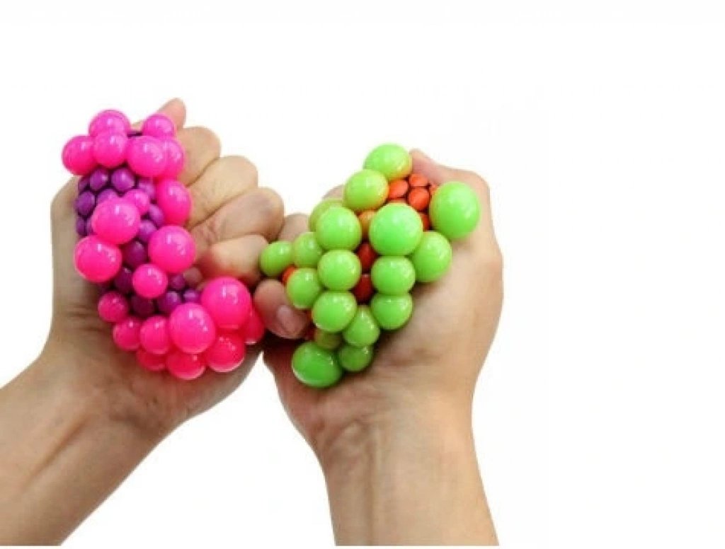 İçerisinde jel bulunan topu sıktığınızda gözenekler dolarak üzüm şeklini alacaktır. Sıkmayı bıraktığınızda tekrar eski halini alıyor.