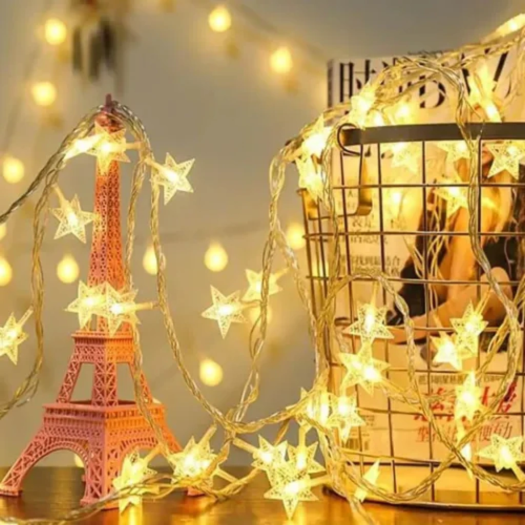 5m Yıldız LED Dize: Sonsuz Işık ve Romantik 8 FonksiyonMekânınıza romantik ve büyüleyici bir ışıltı katın! 5 metre uzunluğunda, 28 adet Yıldız figürü (3.5 cm) içeren bu LED zincir, huzurlu Gün Işığı (Sıcak Sarı) aydınlatmasıyla samimi bir atmosfer yaratır. 8 farklı aydınlatma fonksiyonu (sabit, çakar, dalgalı vb.) sayesinde her anınıza uygun ambiyansı kolayca ayarlayabilirsiniz. Fişli ve uzatma kablolu (eklemeli) yapısıyla, birden fazla seti birbirine bağlayarak büyük dekorasyon projelerinin üstesinden gelebilirsiniz.✨ Temel ÖzelliklerFigür Tipi: Yıldız (3.5 cm boyutunda, belirgin ve dekoratif).Uzunluk ve Adet: 5 Metre uzunluk, 28 adet LED.Işık Rengi: Gün Işığı / Sıcak Işık (Warm White – Huzurlu ve romantik).Fonksiyon: 8 Farklı Işık Modu (Dinamik ve sabit seçenekler).Güç Kaynağı: Fişli (220V) ve Uzatma Kablolu / Eklemeli (Zincirleme bağlantı imkanı).Kullanım: İç mekan dekorasyonu, pencere ve duvar fonu.
