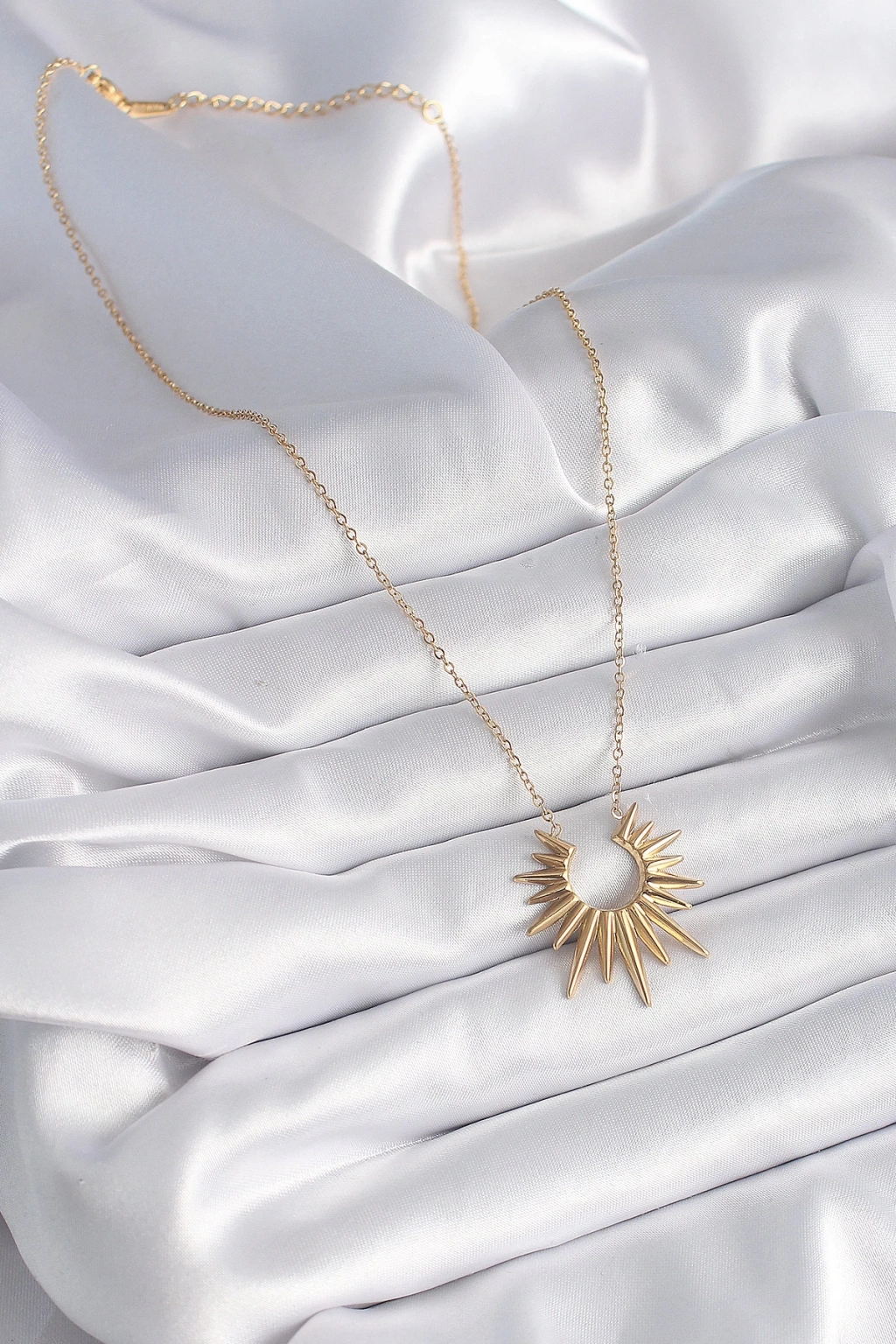 BFS 316L Çelik Gold Renk Güneş Model Vintage Kadın Kolye