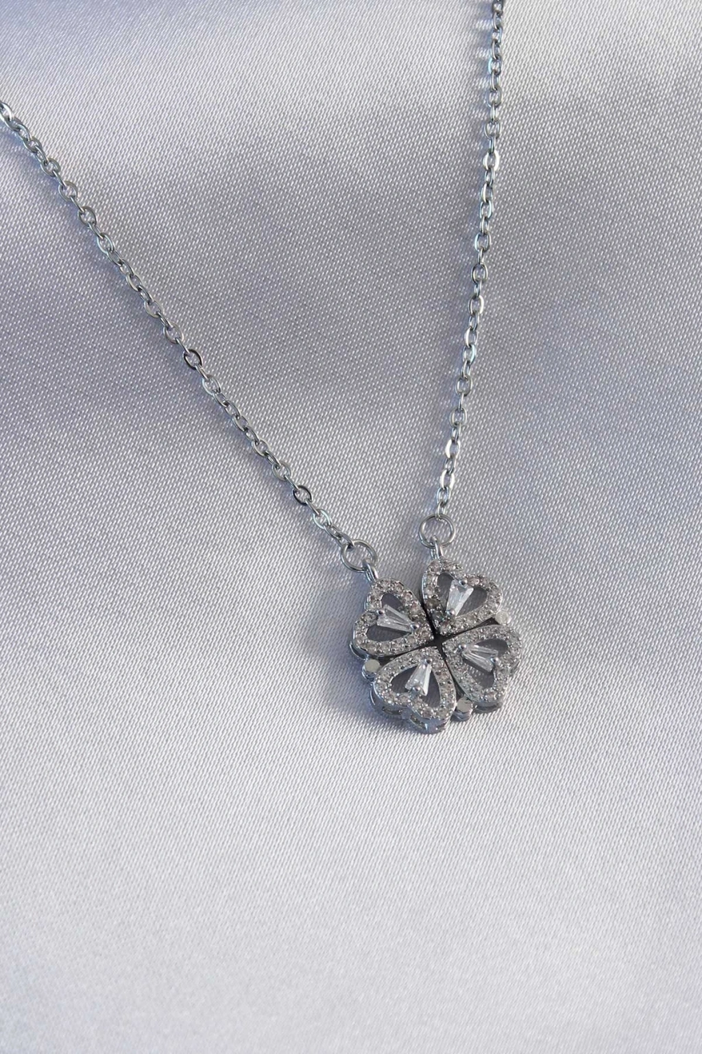 BFS 316L Çelik Gümüş Renk Açılır Yonca Model Kadın Kolye