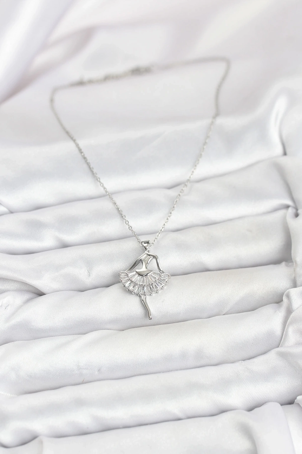 BFS 316L Çelik Gümüş Renk Balerin Model Kadın Kolye