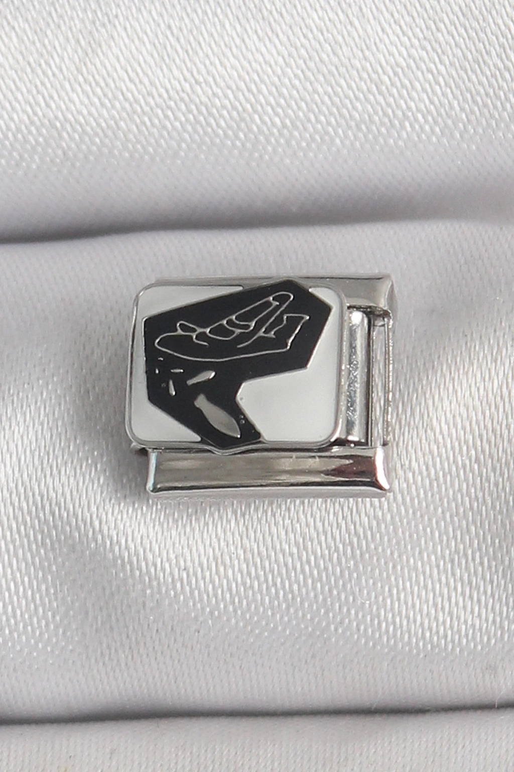 BFS 316L Çelik Gümüş Renk Beyaz Siyah Uçak İşlemeli Portre Model Nomination Charm