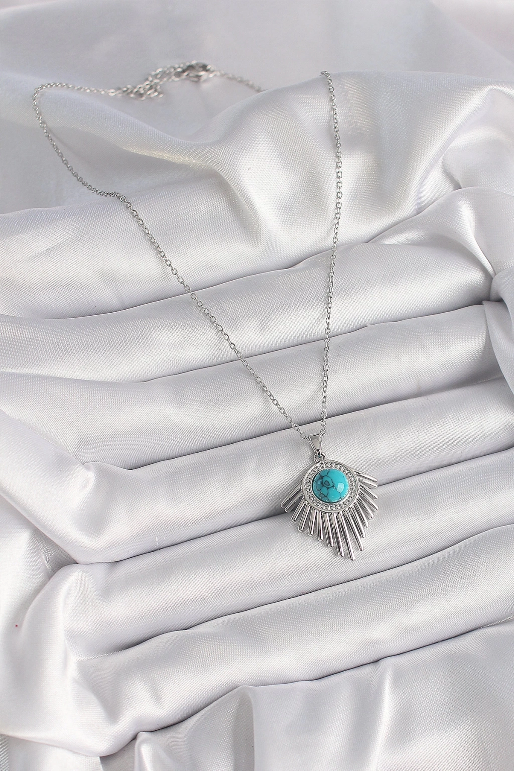 BFS 316L Çelik Gümüş Renk Zincir Mavi Boncuklu Zirkon Taşlı Kadın Kolye