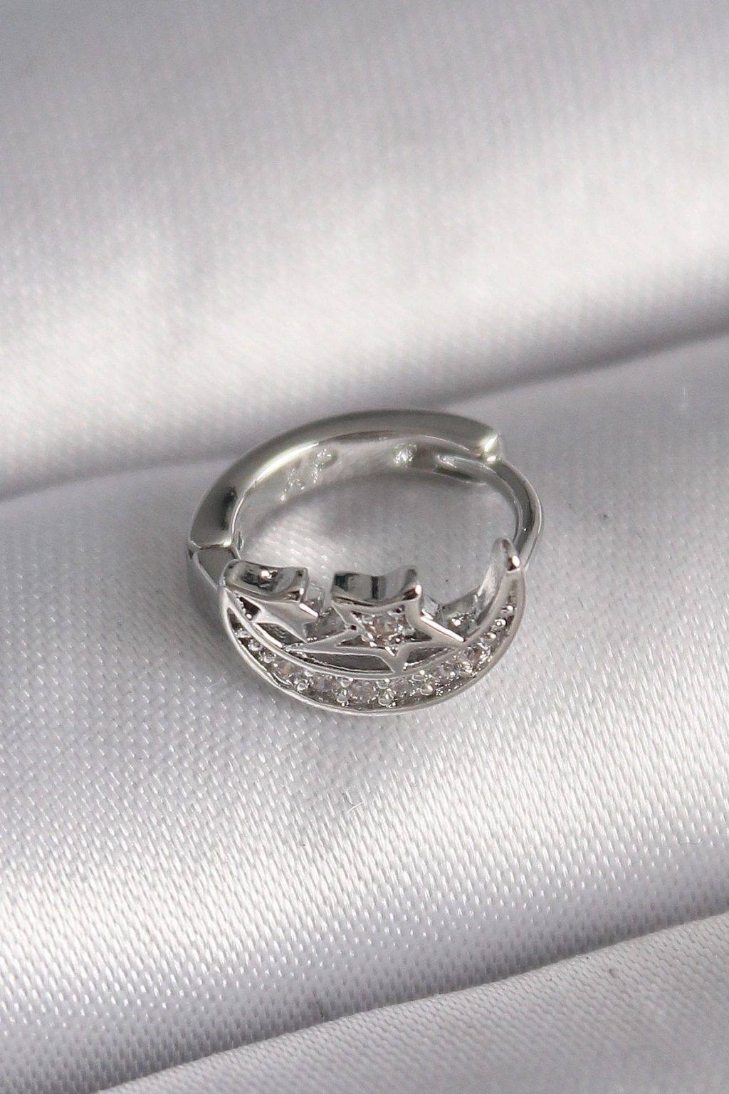 BFS 316L Çelik Gümüş Renk Zirkon Taşlı Ay Yıldız Model Tragus Piercing
