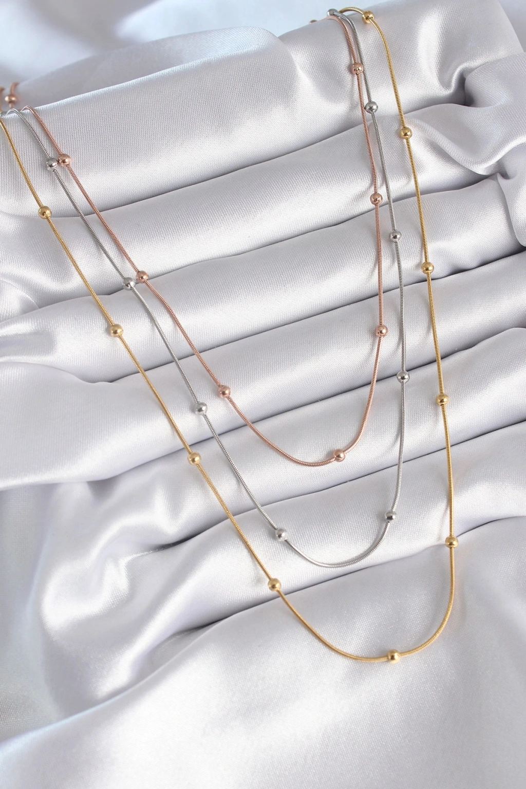 BFS 316L Çelik Mix Renk 3'lü Topçuk Detay Kadın Kolye
