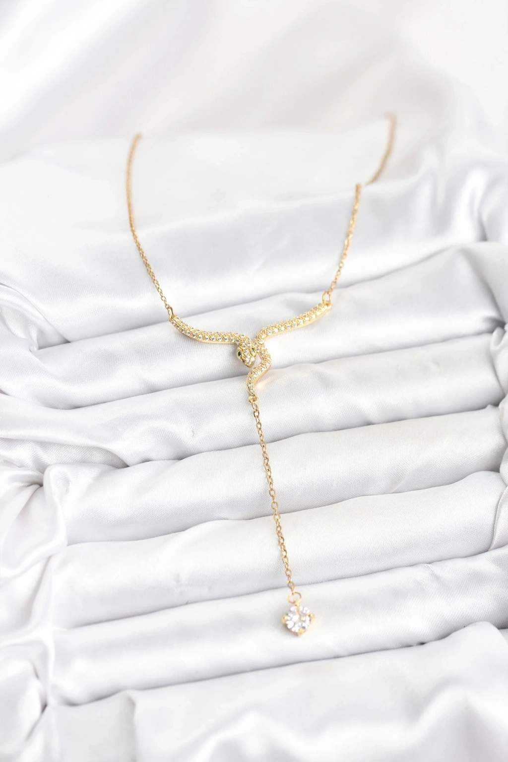 BFS 316L Çelik Zincir Gold Renk Yılan Model Y Kolye