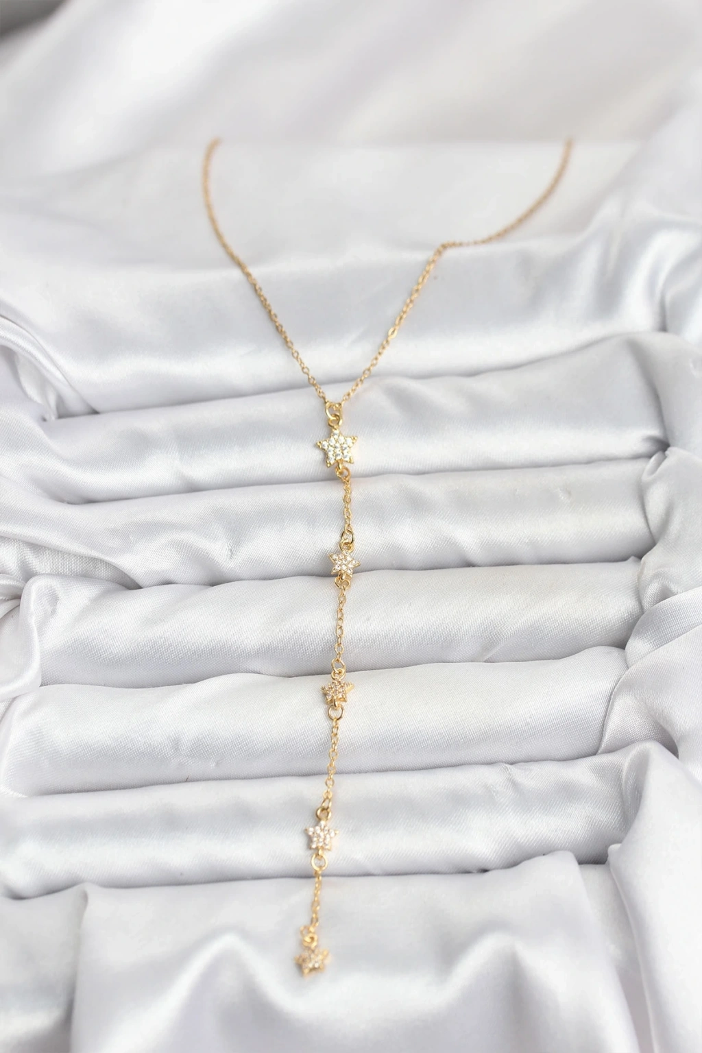 BFS Pirinç Gold Renk Zincirli Zirkon Taşlı Minimal Yıldız Model Kadın Kolye