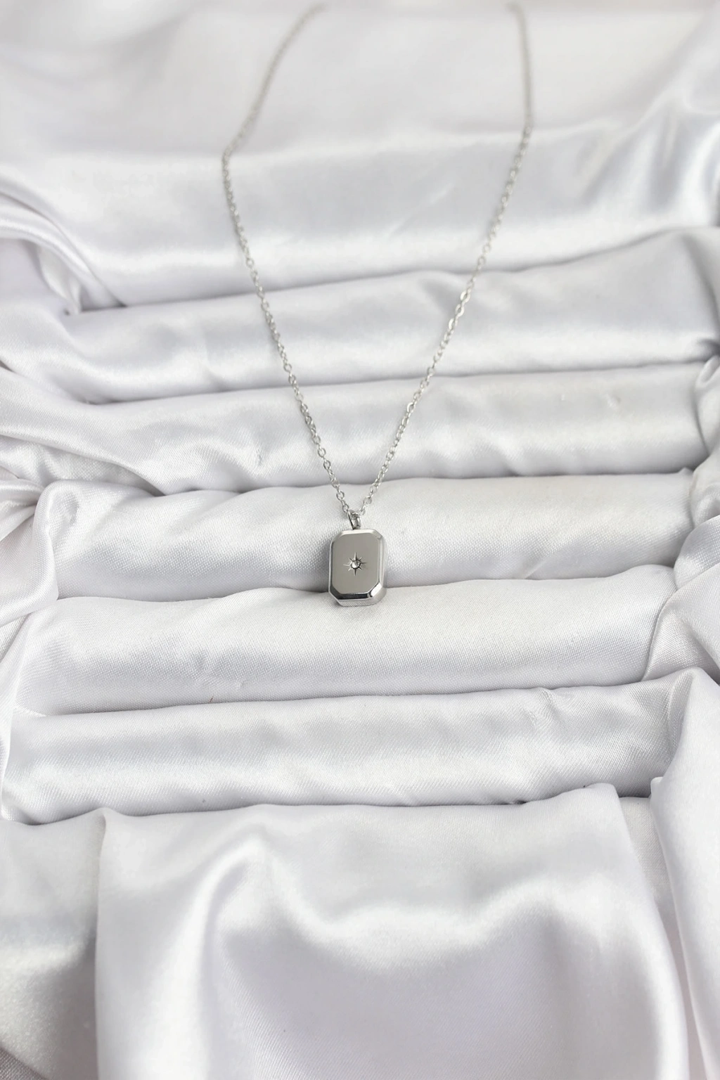 BFS 316L Çelik Zincir Gümüş Renk Minimal Kutup Yıldızı Model Kadın Kolye