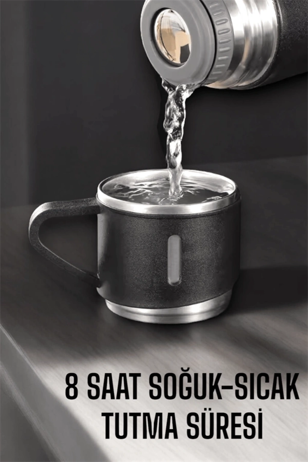 BFS Şık ve Dayanıklı 3 Bardaklı Termos Seti Uzun Süre Isı Koruma Özellikli