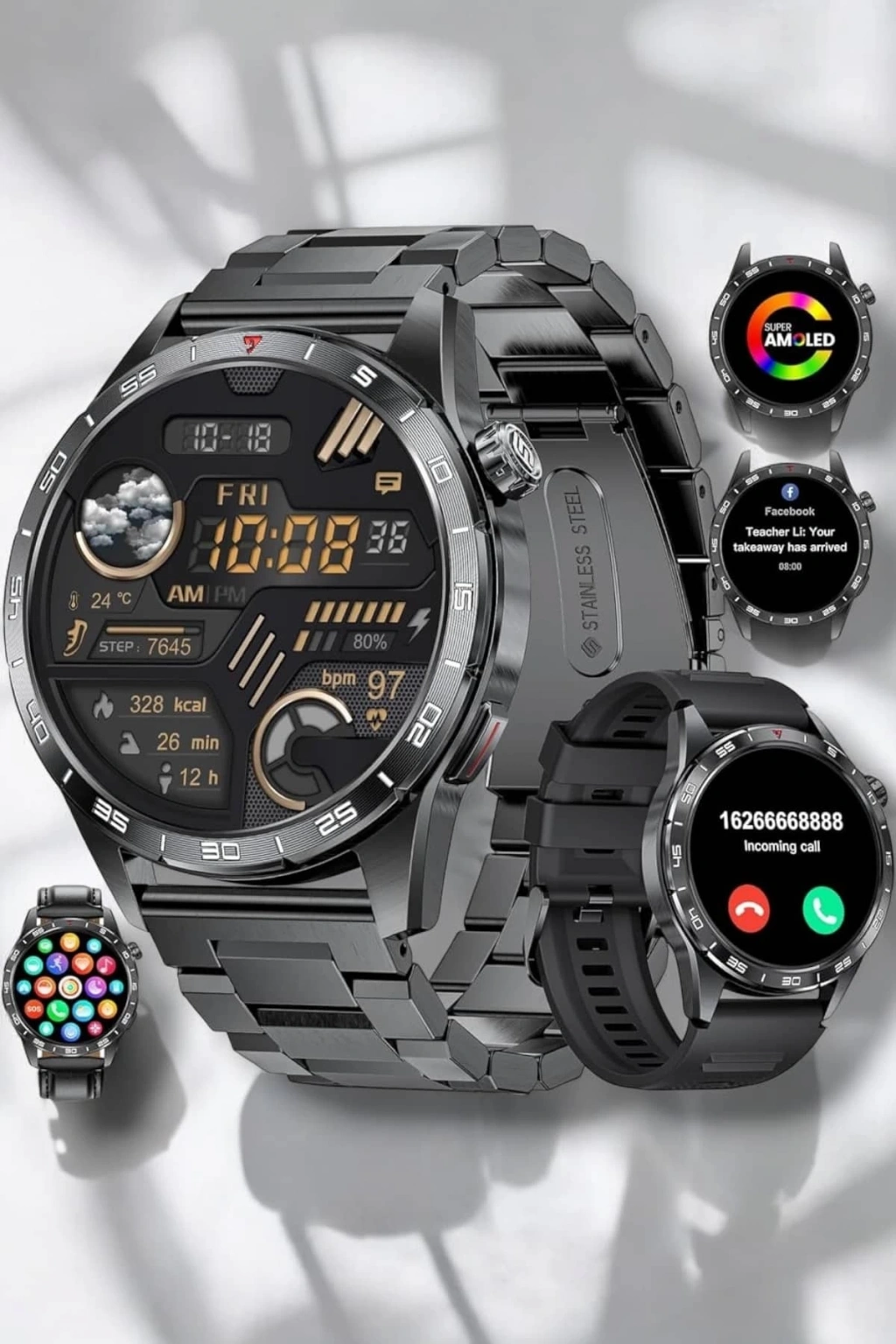 BFS Amoled Ekran Akıllı Saat Harita Gösterimli Bluetooth Aramalı 3 Kayışlı