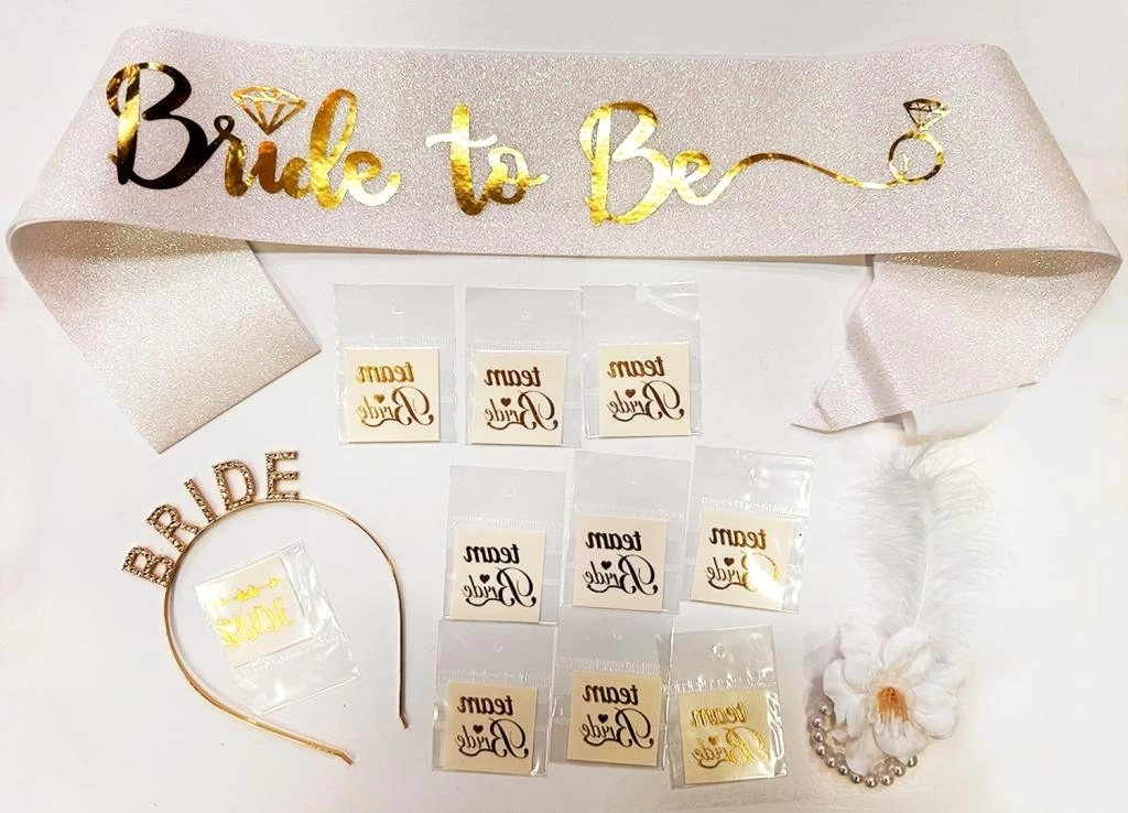 BFS Altın Renk Bride Partisi Taç Kuşak Dövme Bileklik Seti Full 13 Parça