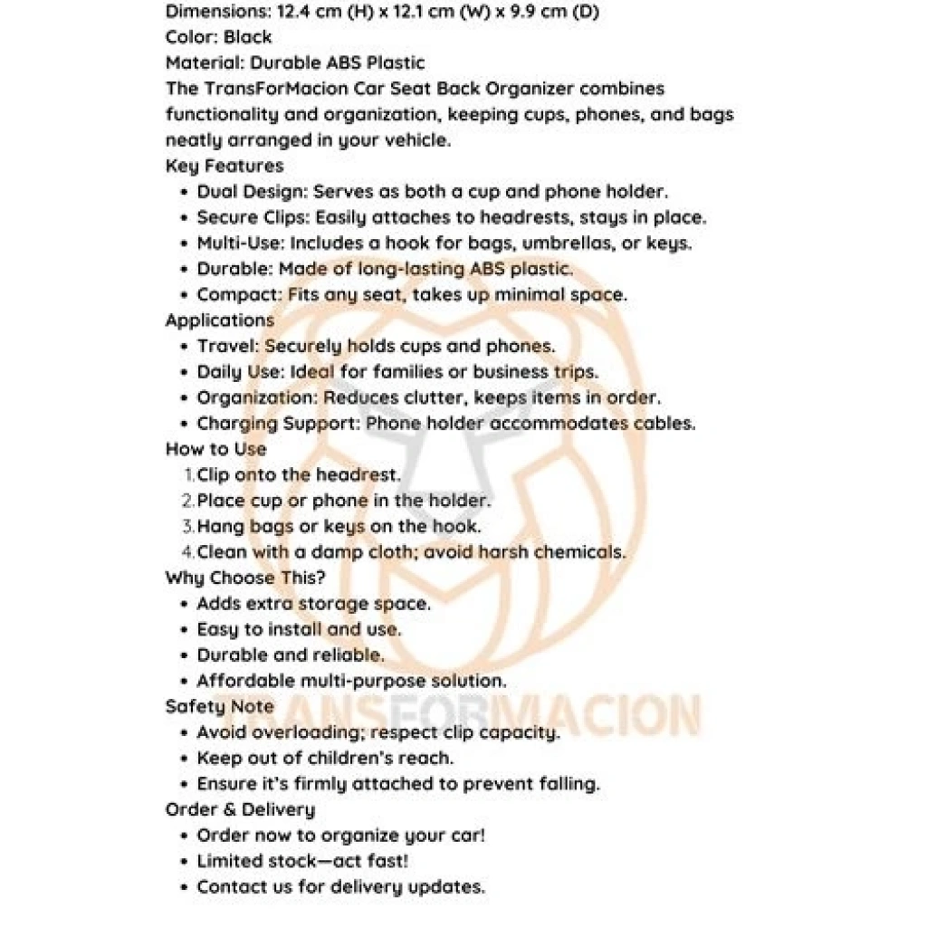 BFS Araç Koltuk Arkası Organizer Bardak Telefon Tutucu