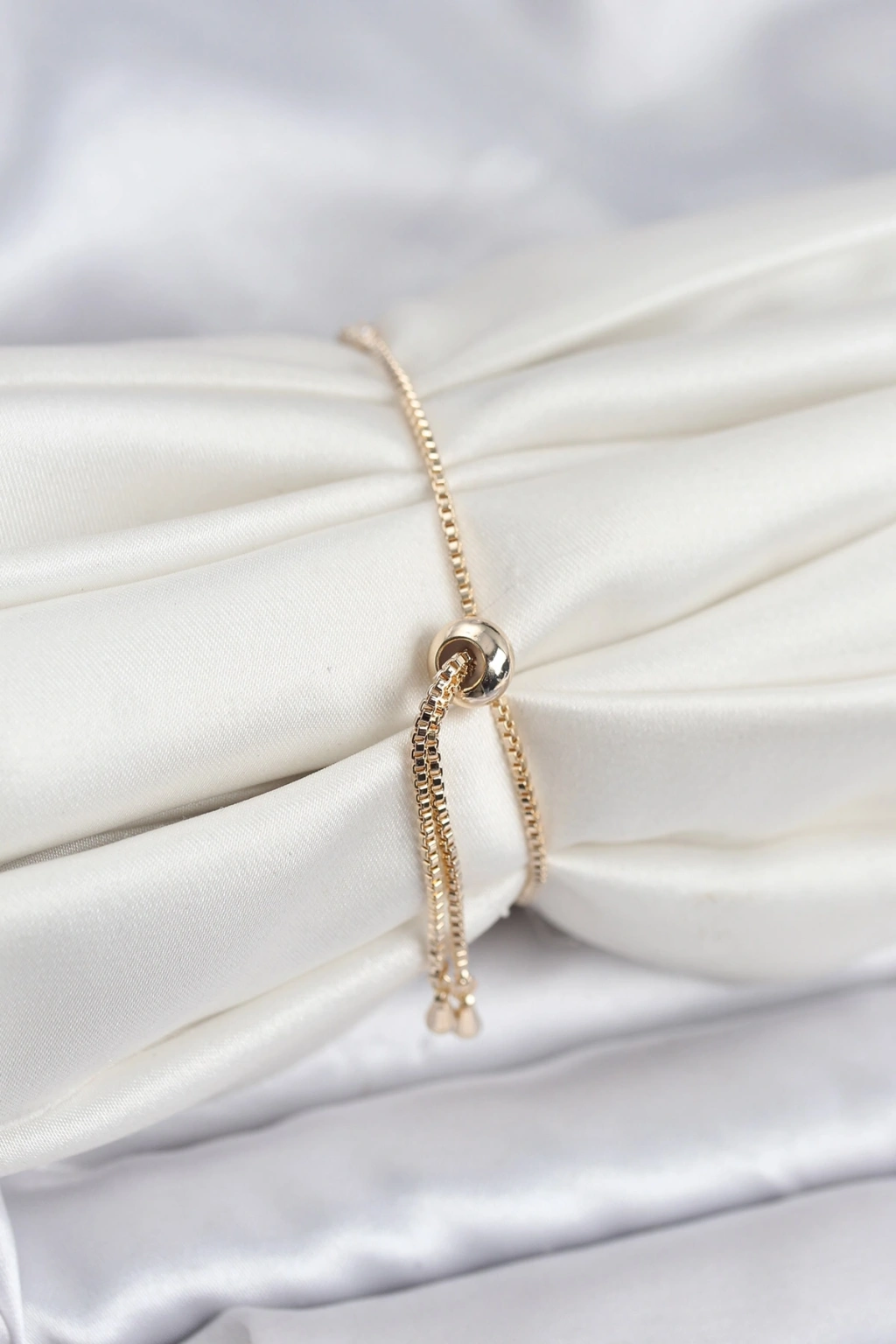BFS Pirinç Kare İnci Model Gold Renk Lastikli Kadın Bileklik