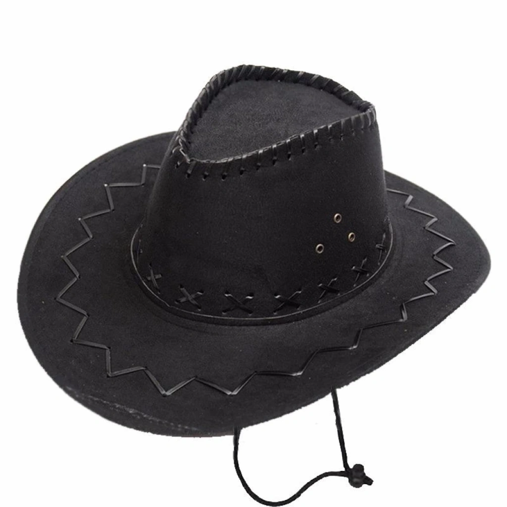 BFS Bağcıklı Çocuk Boy Nubuk Süet Kovboy Şapkası Siyah Renk