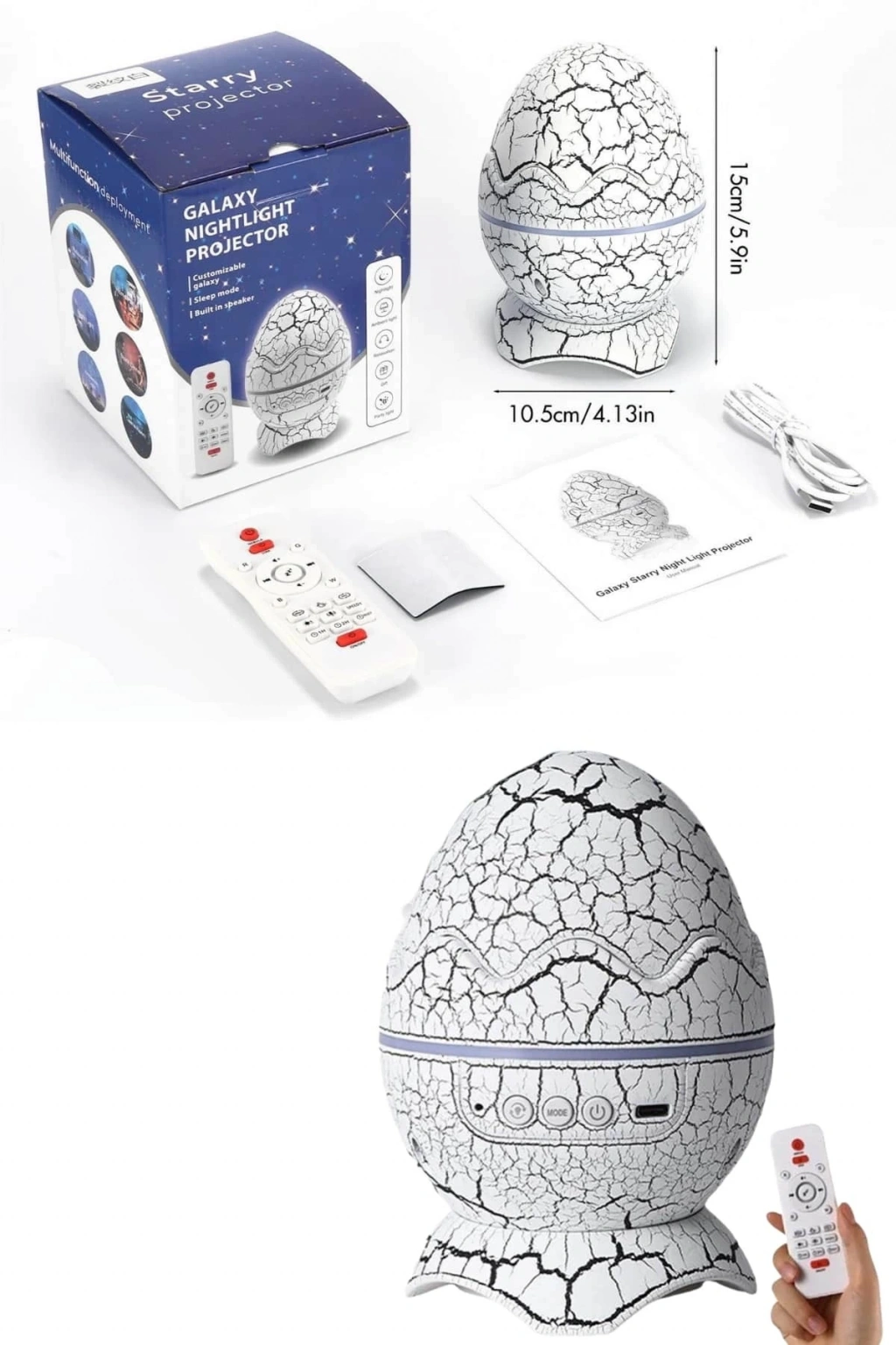 BFS Dinozor Yumurtası Tasarımlı Projektörlü Gece Lambası