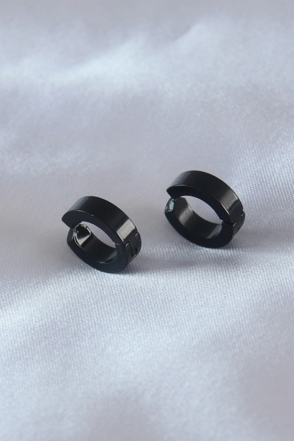 BFS Çelik Siyah Renk Sıkıştırmalı Erkek Küpe