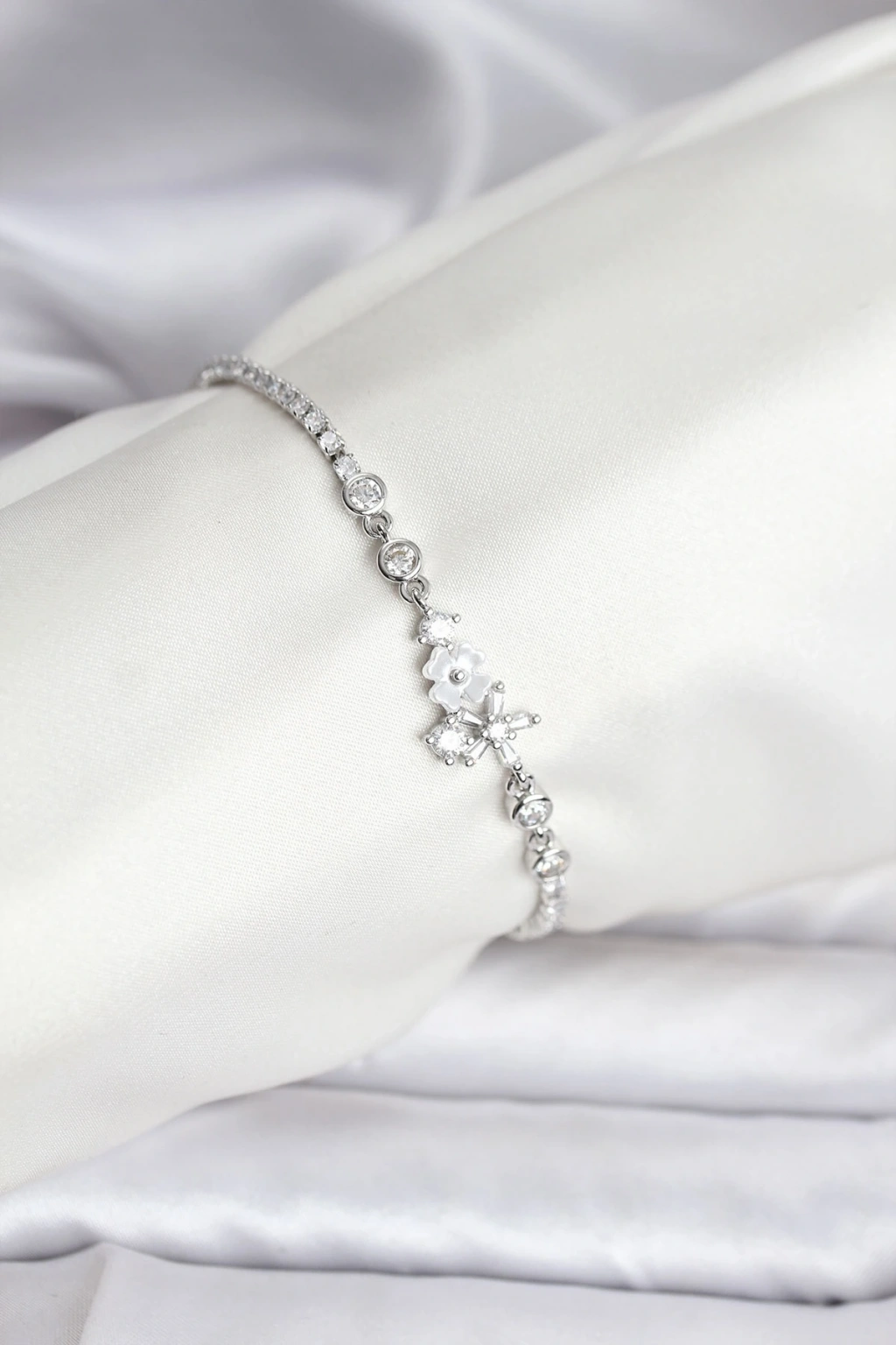 BFS Çiçekli Model Zirkon Taşlı Gümüş Renk Su Yolu Kadın Bileklik