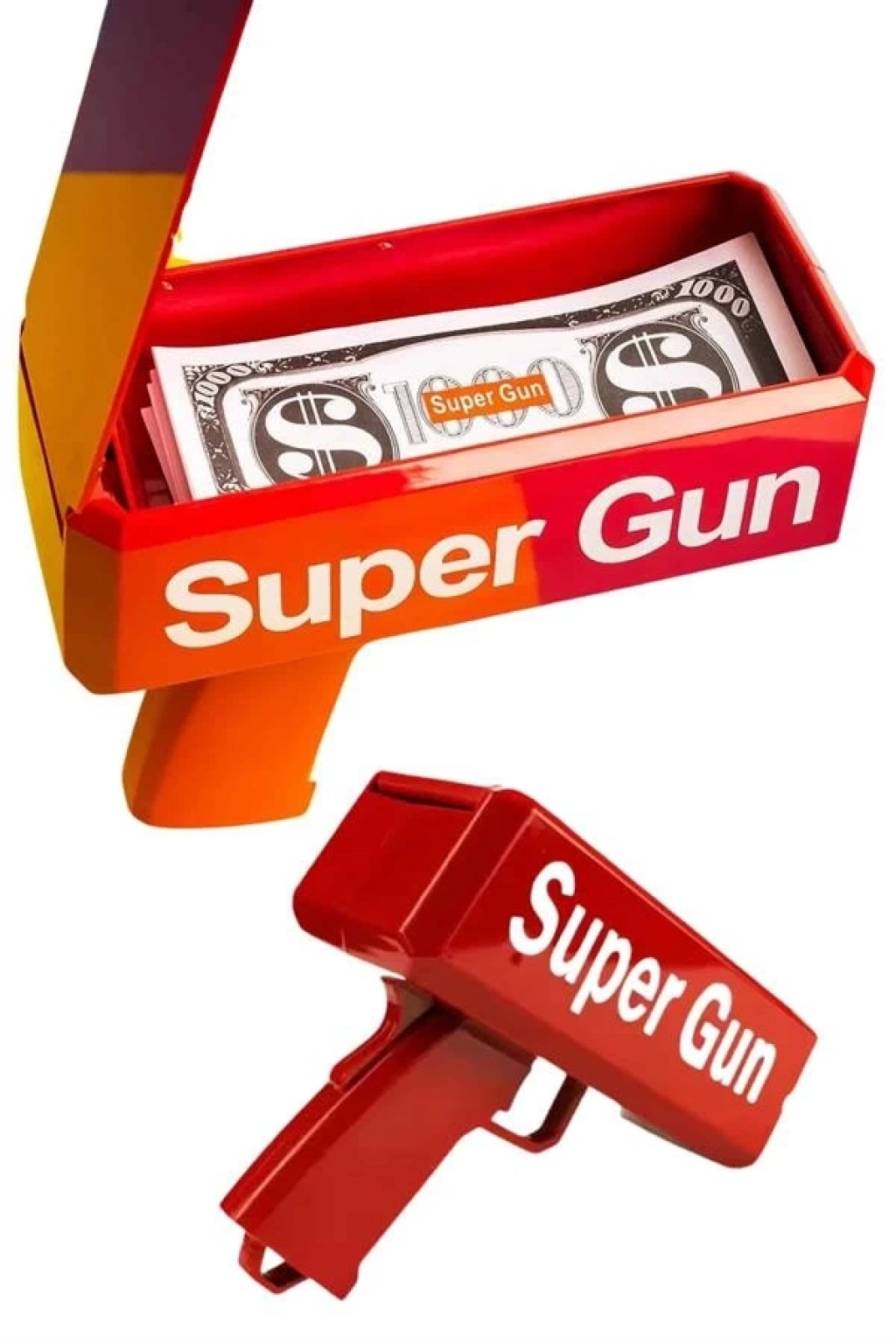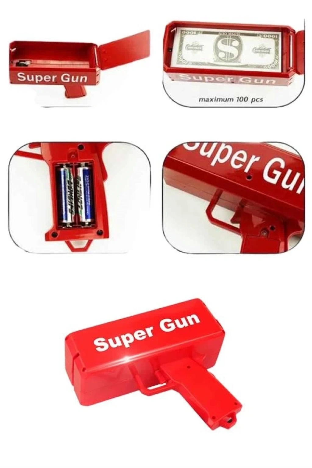 BFS Kırmızı Parti Oyuncağı Para Saçma Fırlatma Tabancası Makinesi Super Money
