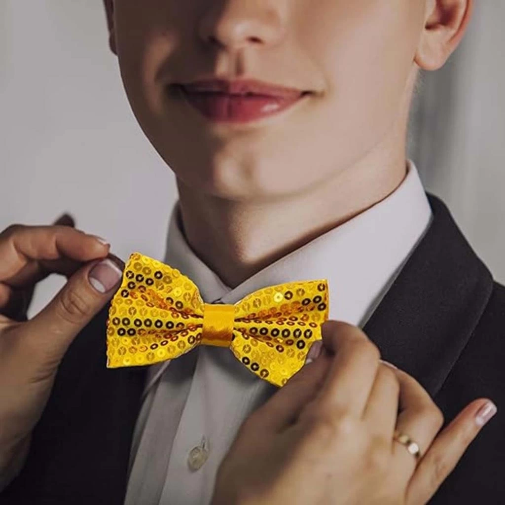 BFS Gece Işıltısı Altın Payetli Pullu Papyon 7x2 cm
