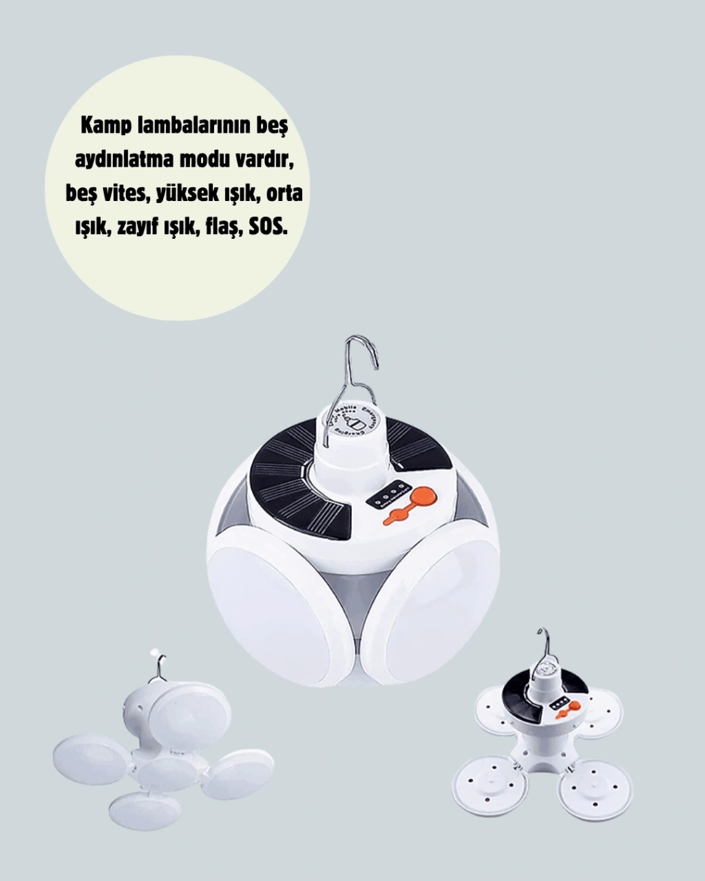BFS Katlanabilir Askılı Kamp Lambası 5 Kanatlı Pratik Güneş Enerjili
