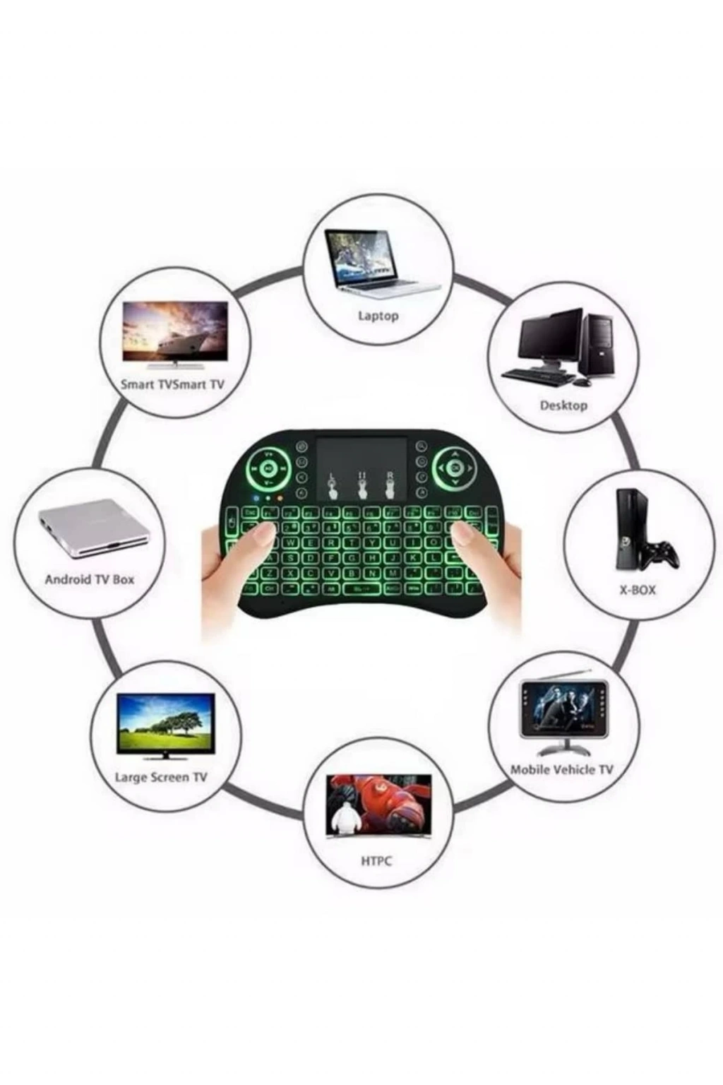 Smart Tv Box Ps3 Uyumlu Kablosuz Dokunmatik Işıklı Şarjlı Touchpadli Mini Q Klavye