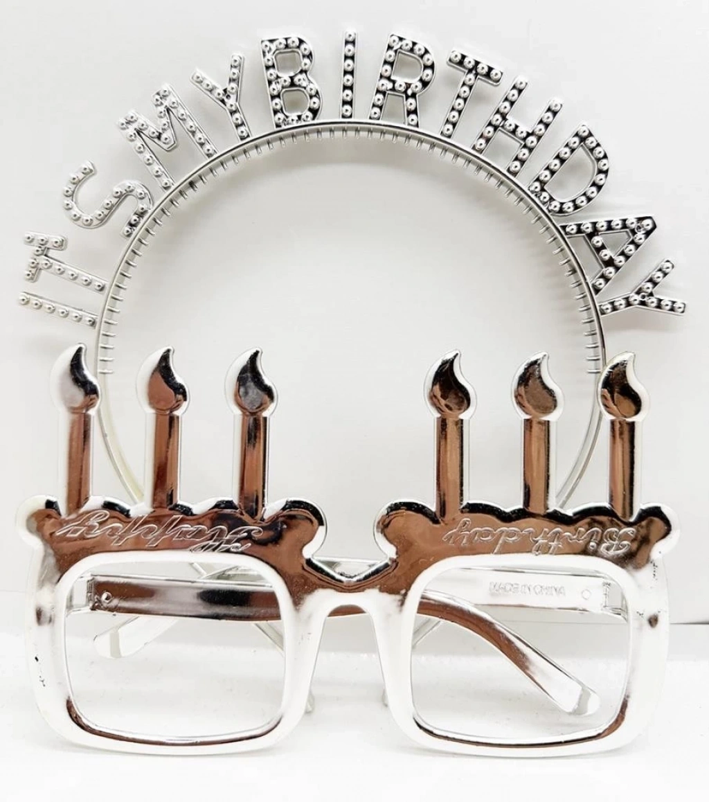 BFS İt'sMyBirthdayYazılıTaçveMumŞekilliGözlükSetiGümüşRenk