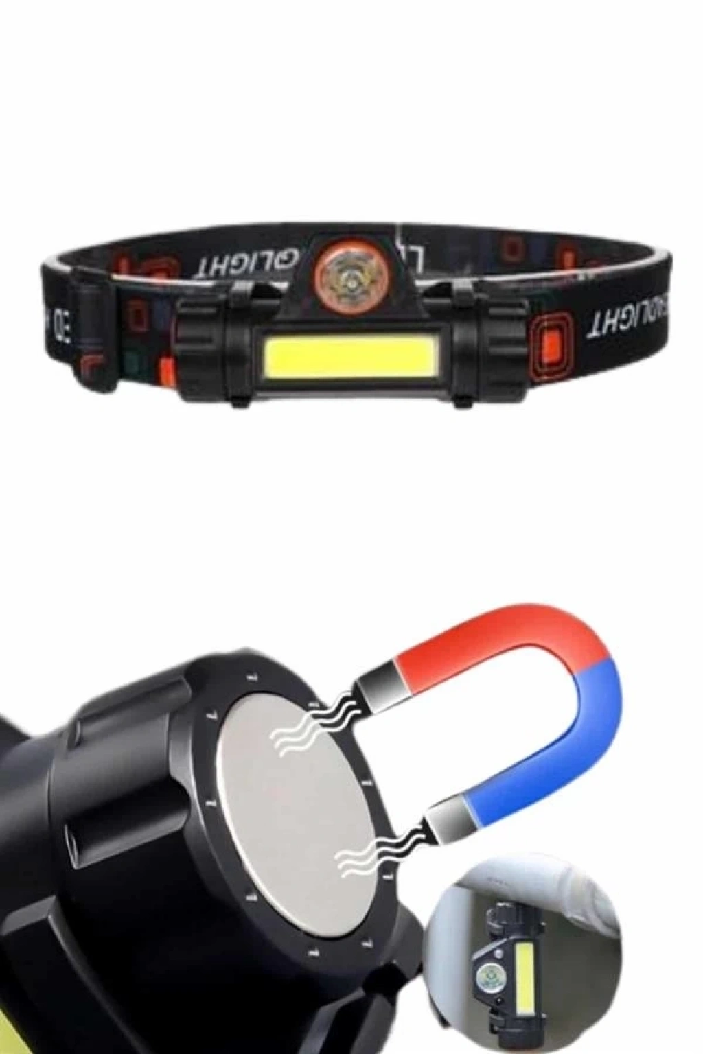BFS Kafa Lambası Çalışma Işığı Süper Parlak Mıknatıslı Lityum Lion Pilli