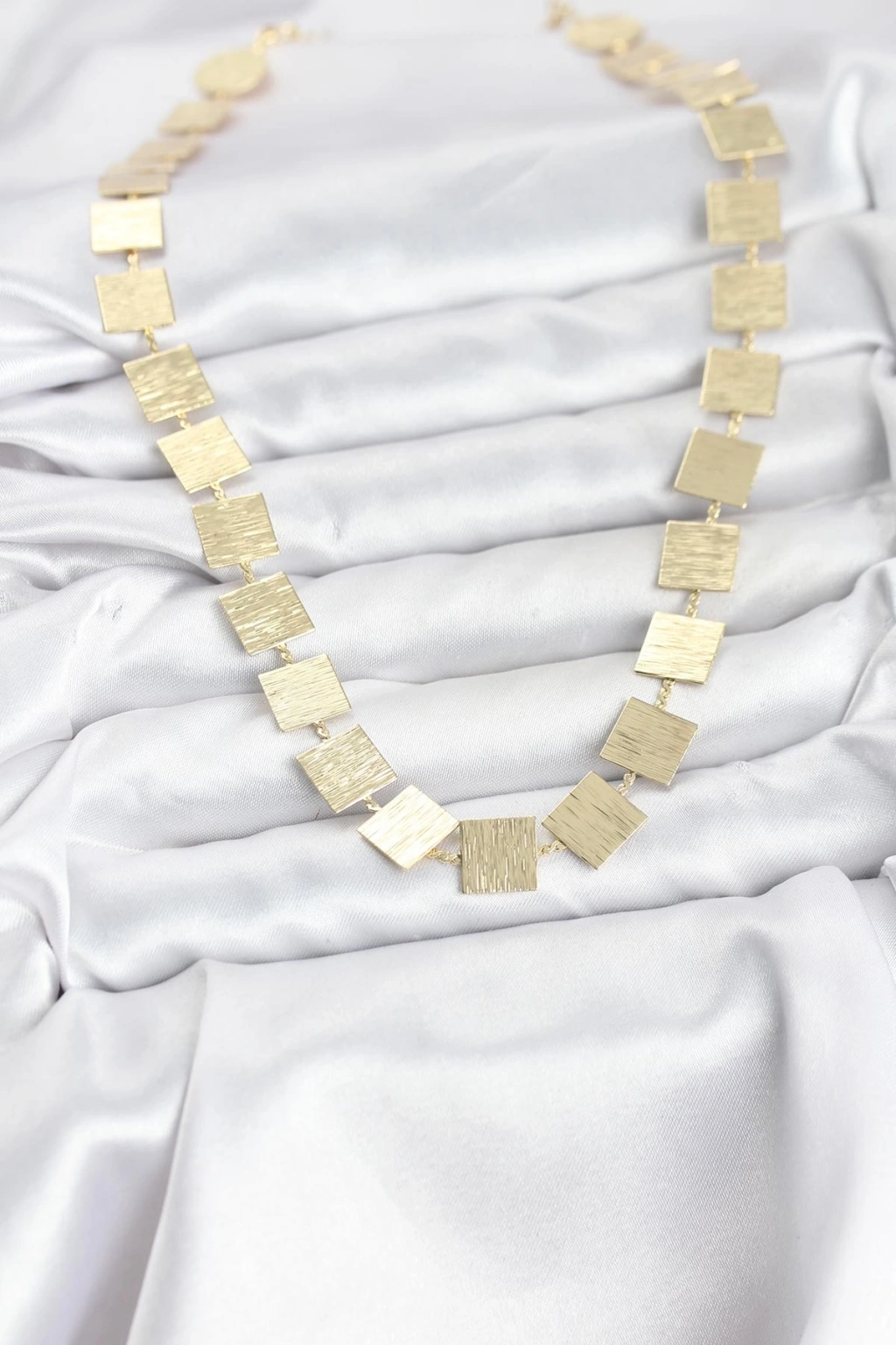 BFS Kare Plaka Model Gold Renk Kadın Kolye