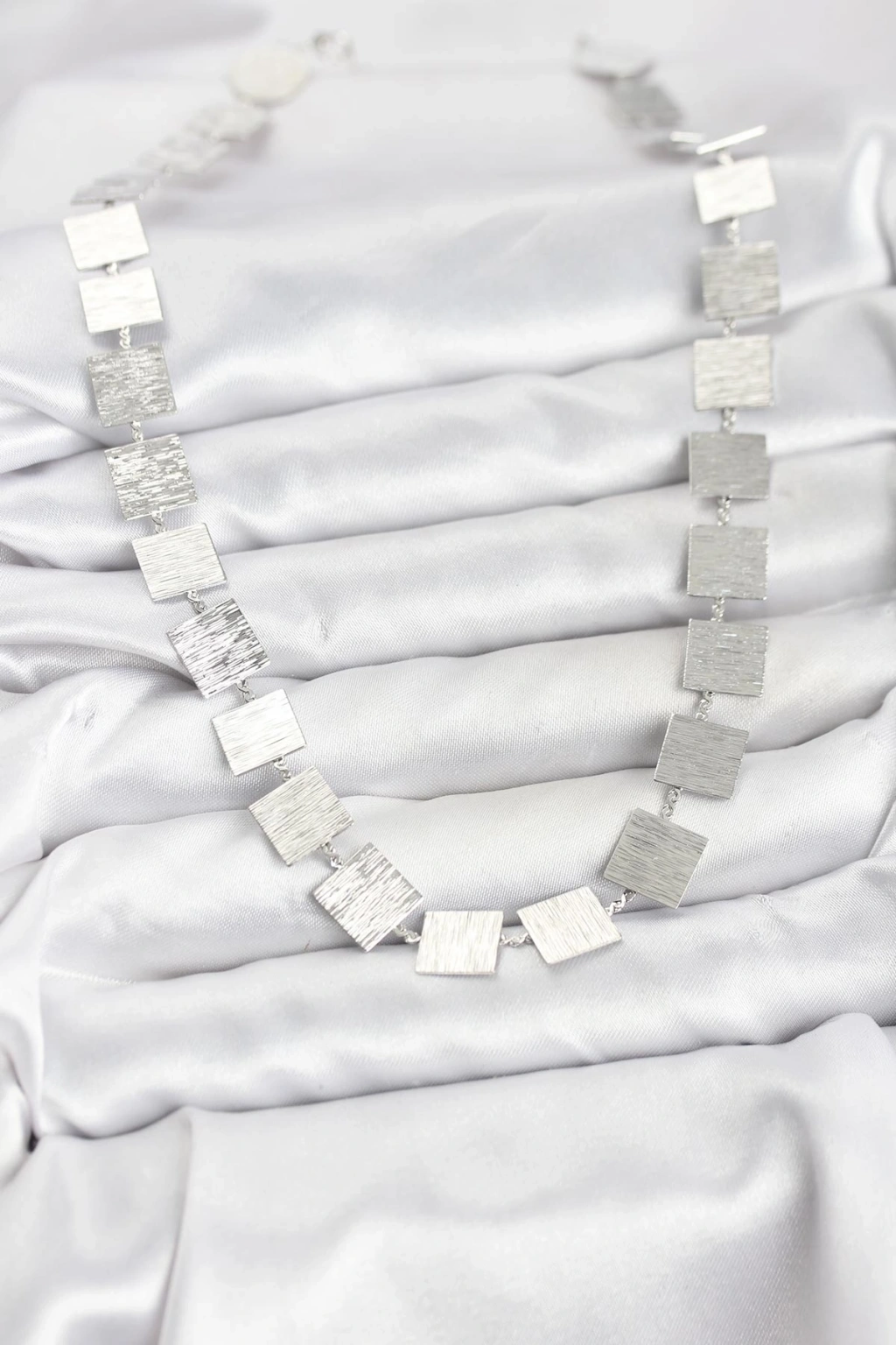 BFS Kare Plaka Model Gümüş Renk Kadın Kolye