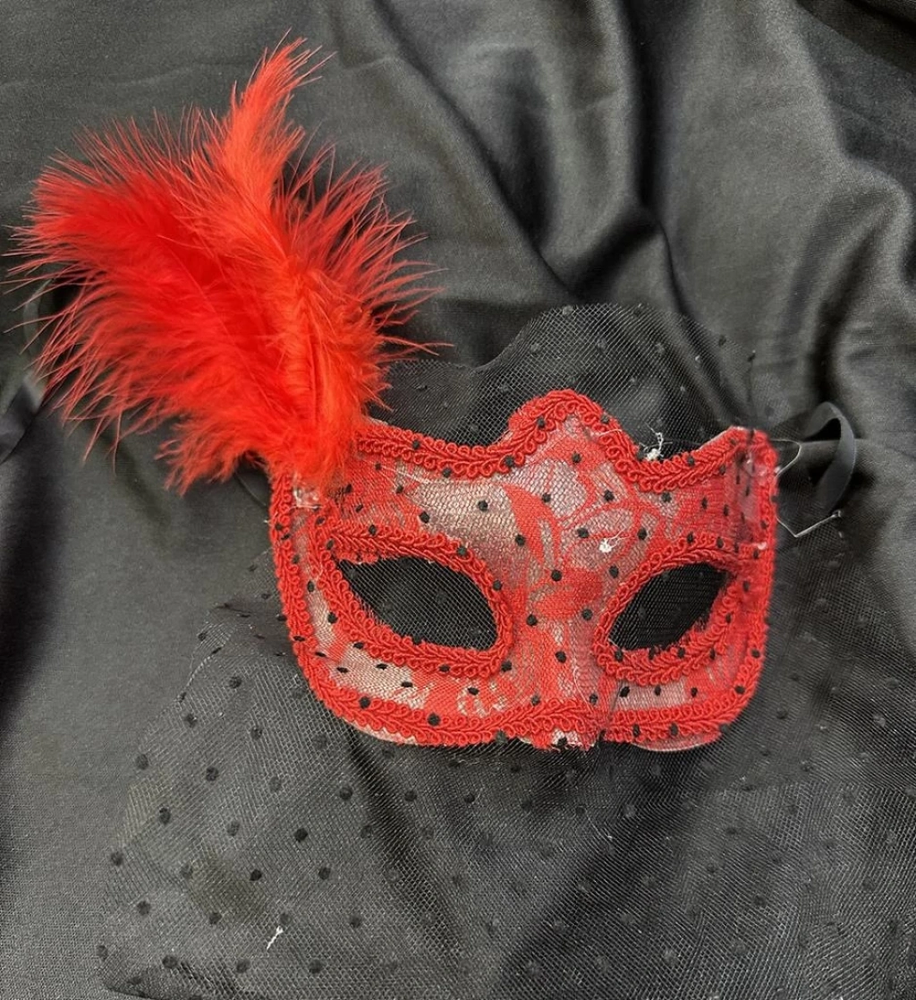 BFS Kırmızı Renk Dantelli Duvaklı Parti Maskesi Balo