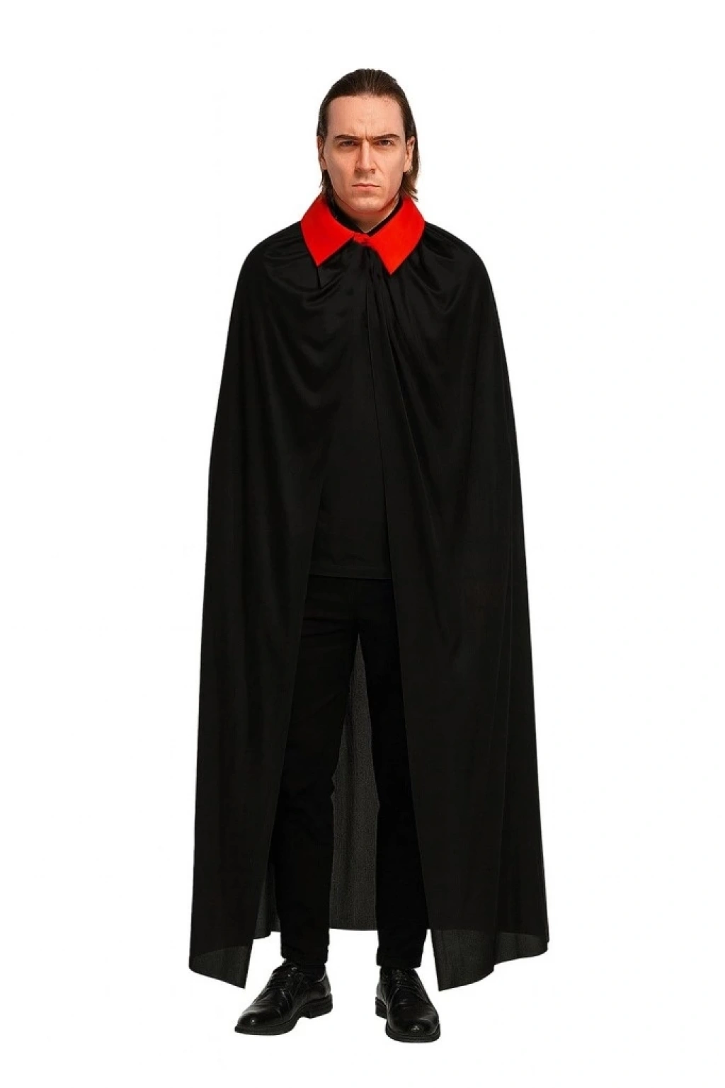 BFS Kırmızı Yakalı Siyah Dracula Pelerin 120 cm