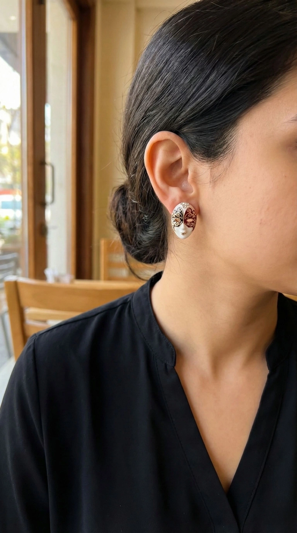 BFS Lotus Model Siyah Renk Tüllü Kadın Küpe