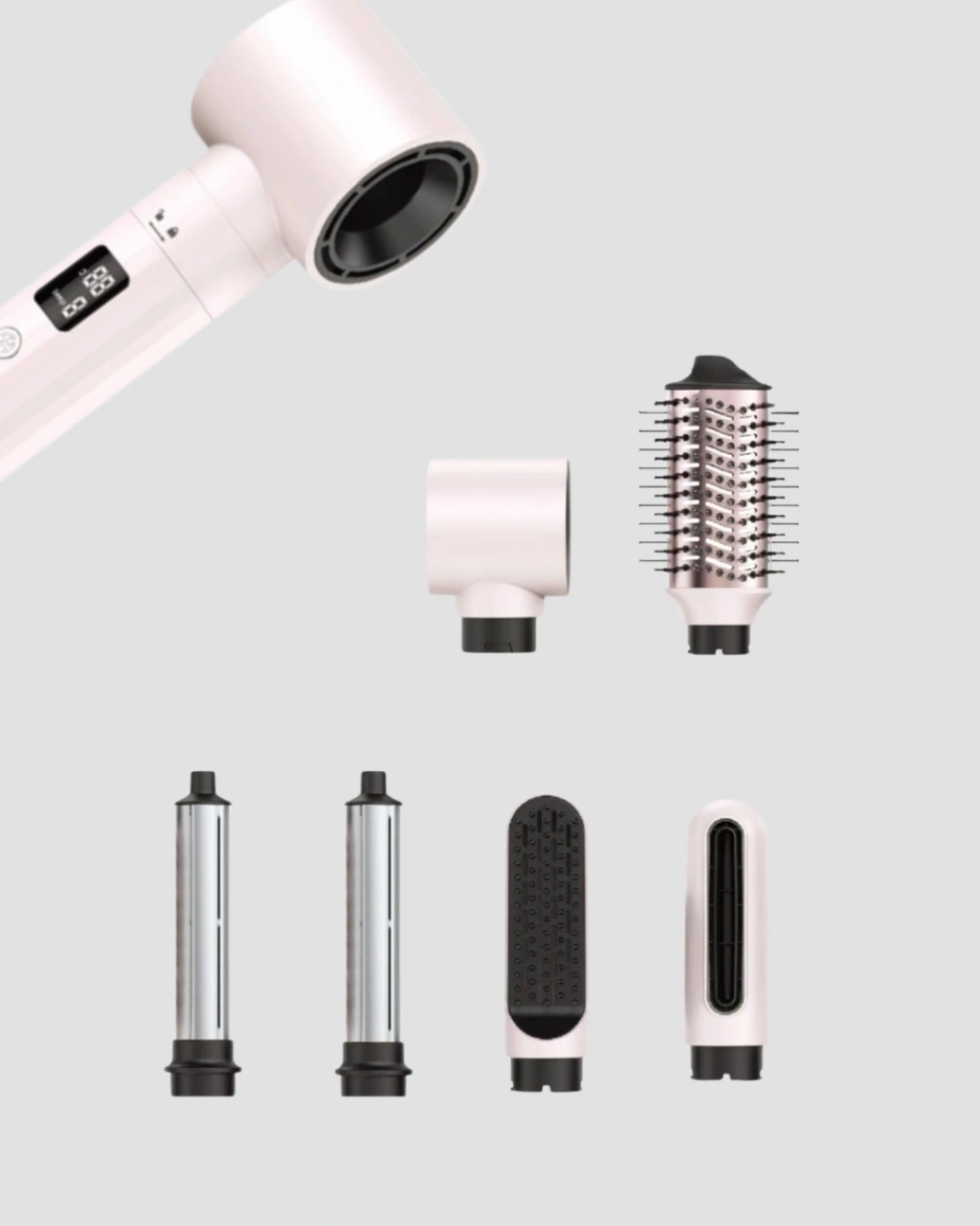 BFS 6-in-1 Saç Şekillendirme Seti Yüksek Hızlı Motor Negatif İyon LCD Ekran