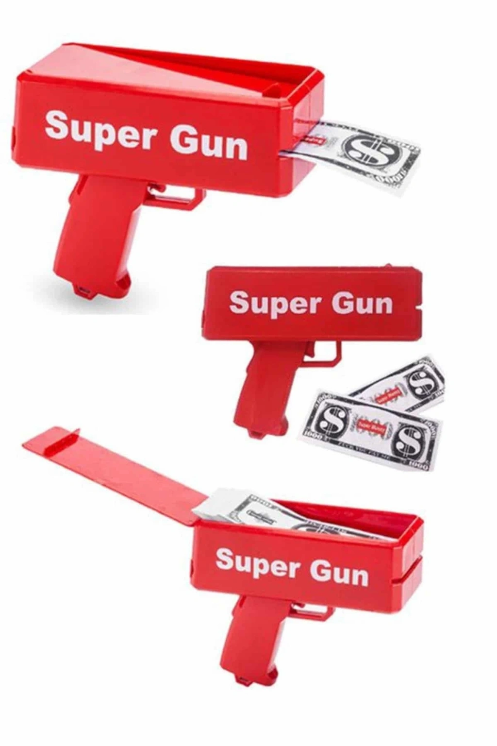 BFS Kırmızı Parti Oyuncağı Para Saçma Fırlatma Tabancası Makinesi Super Money