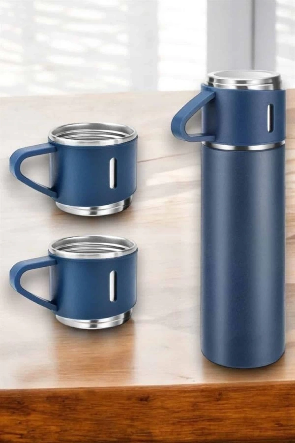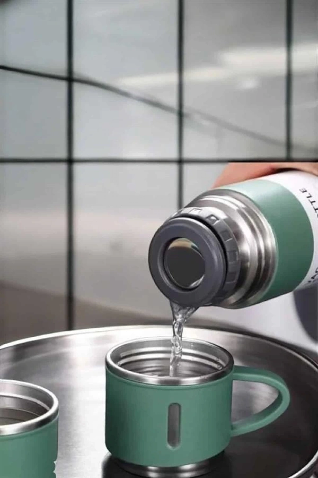 BFS Şık ve Dayanıklı 3 Bardaklı Termos Seti Uzun Süre Isı Koruma Özellikli