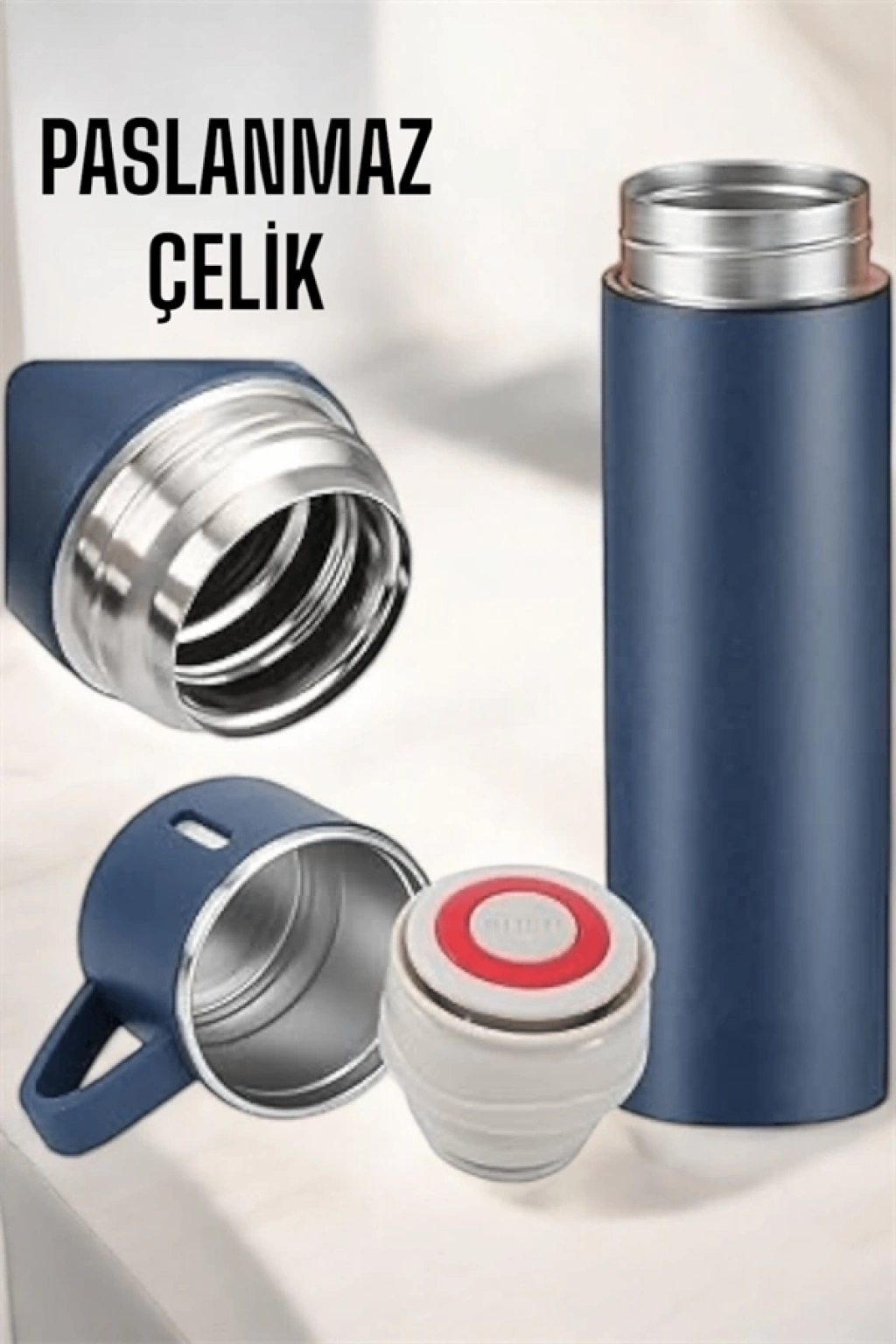 BFS 500 ml Isı Korumalı Çelik Termos ve Bardak Seti | Silikon Tabanlı, Şık ve Pratik
