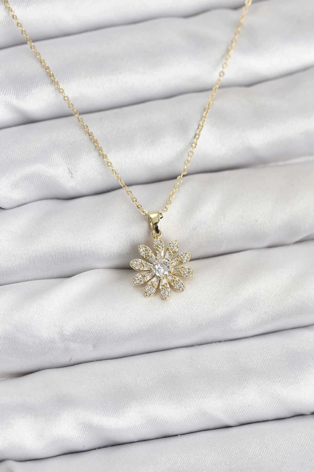 BFS Pirinç Gold Renk Çiçek Model Kadın Kolye