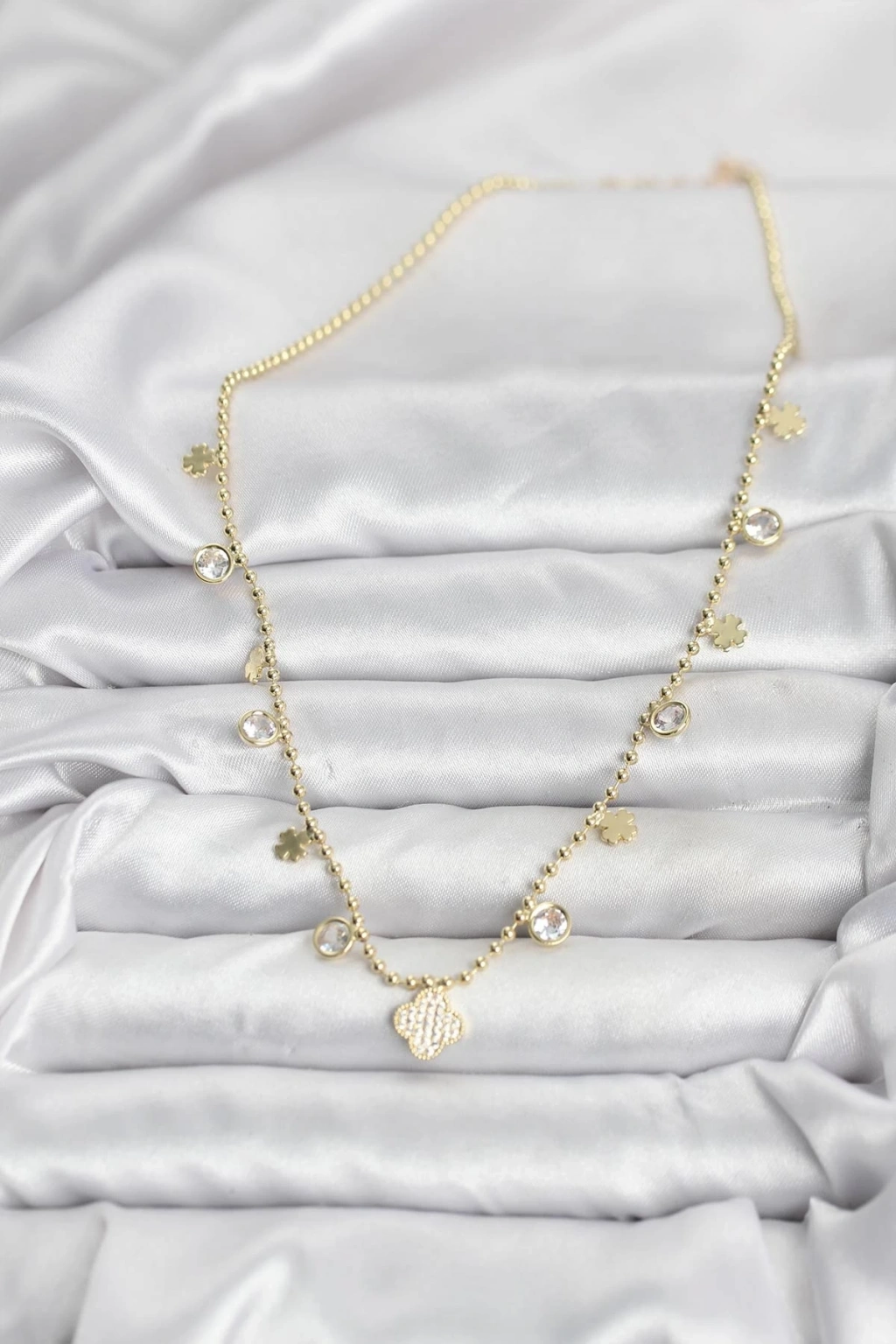 BFS Pirinç Gold Renk Yonca Model Kadın Kolye