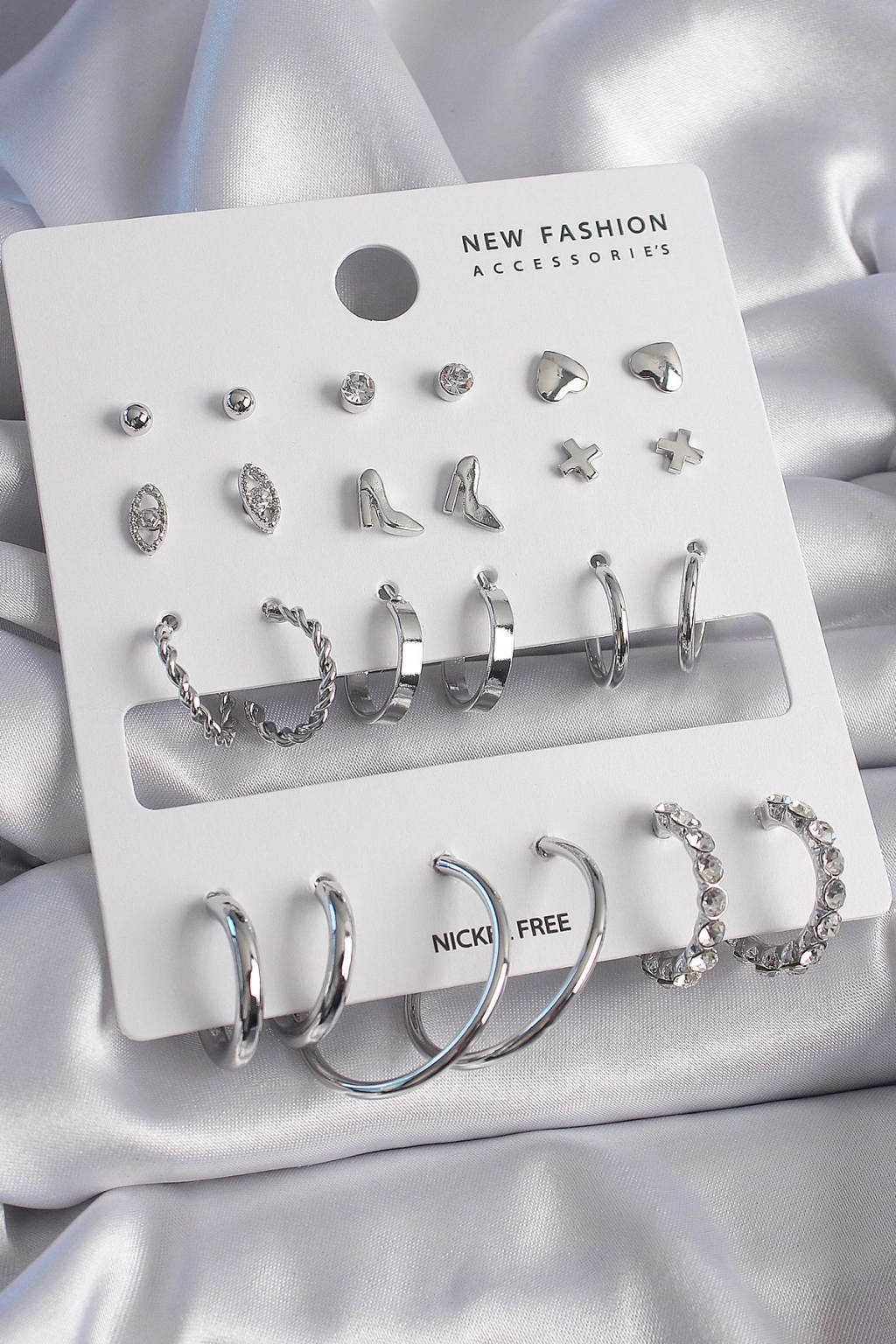 BFS Pirinç Gümüş Renk 12 Çift Kadın Küpe Seti