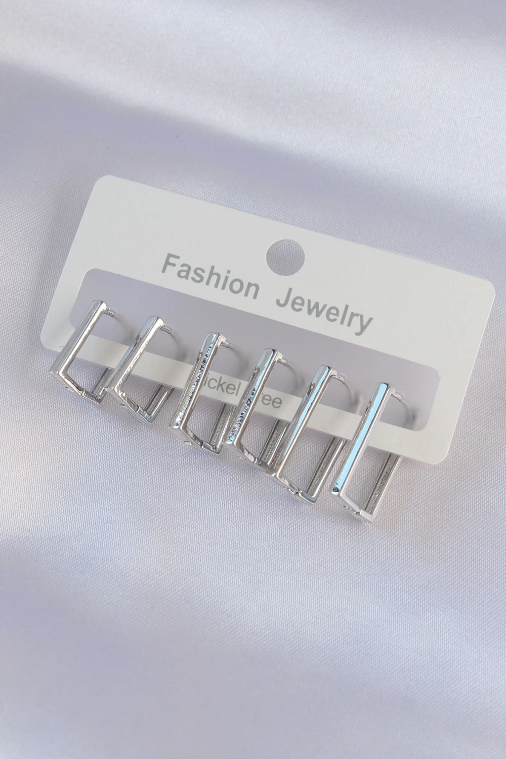 BFS Pirinç Gümüş Renk Dikdörtgen Model Küpe Seti