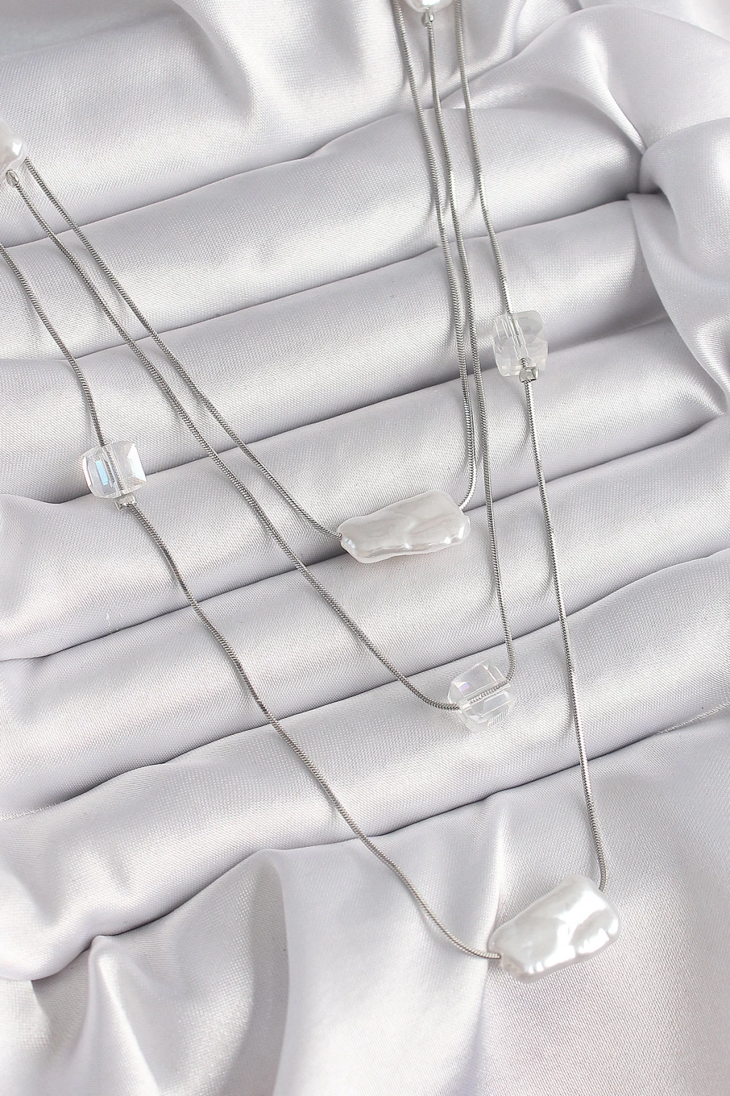 BFS Pirinç Gümüş Renk Ezme İnci Model Çoklu Kadın Kolye
