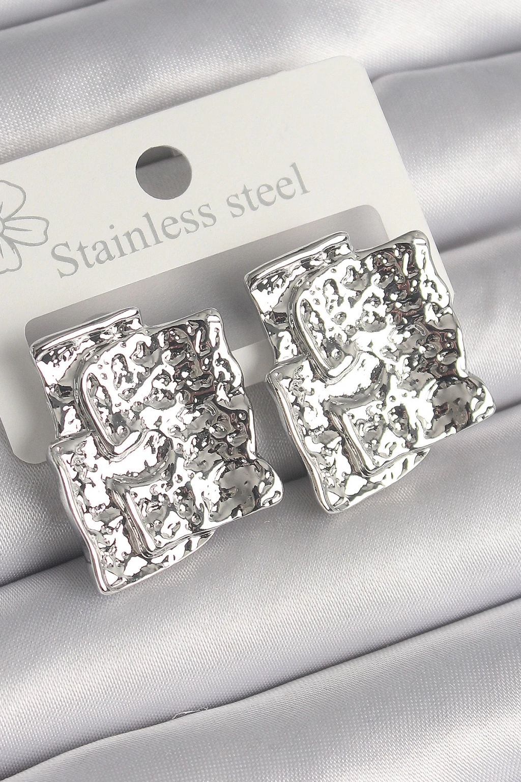 BFS Pirinç Gümüş Renk İşlemeli Kare Plaka Model Kadın Küpe