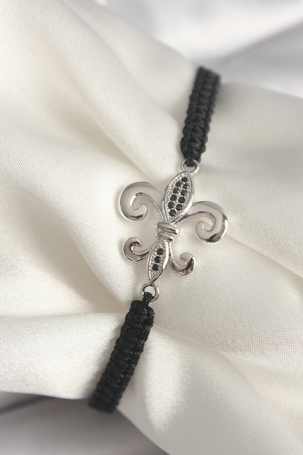 BFS Pirinç Gümüş Renk Zirkon Taş İşlemeli Zambak Model Asansörlü Makrome Model Kadın Bileklik