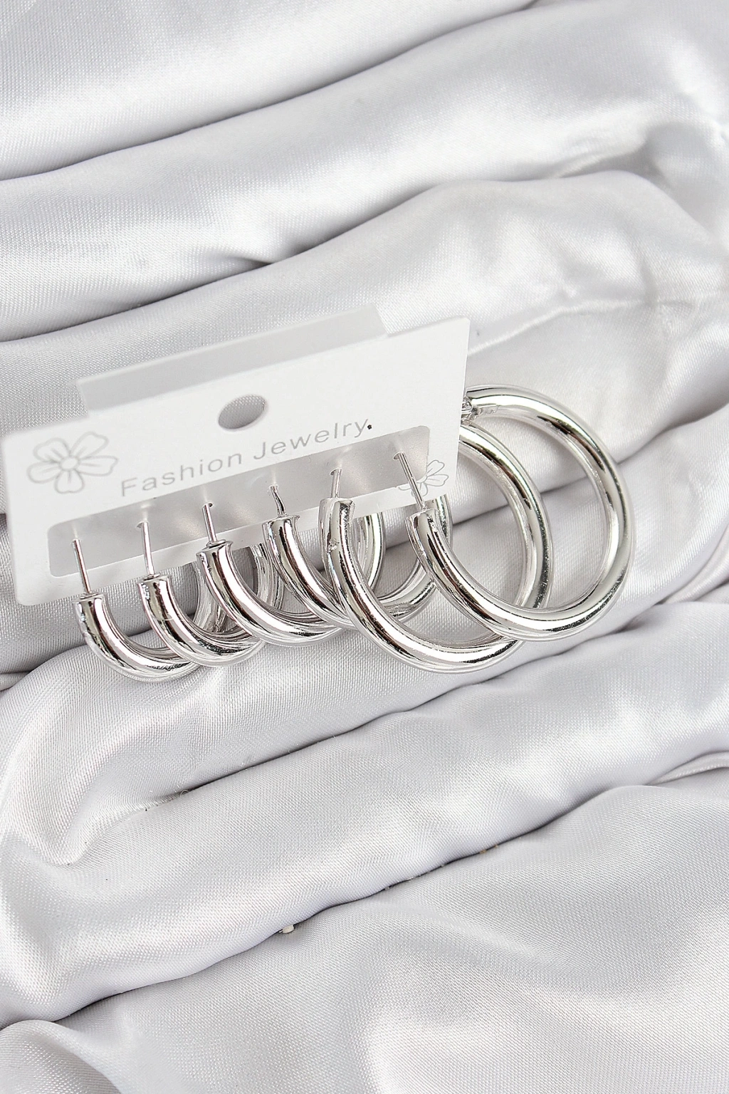 BFS Yonca Model Gümüş Renk Pirinç 3'lü Kadın Küpe Seti
