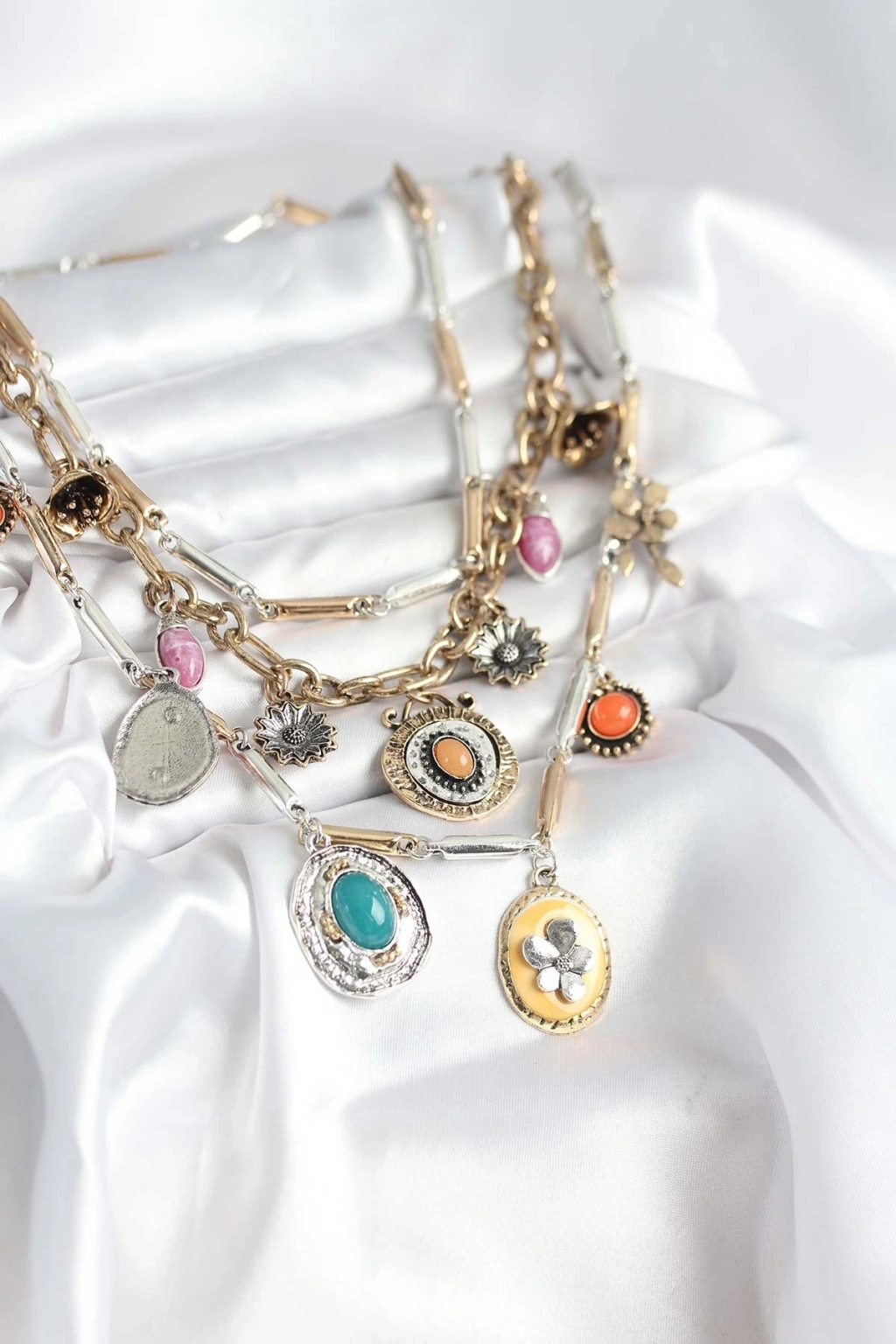 BFS 316L Çelik Zincir Gold Renk Çiçek Model Sallantılı Kadın Kolye