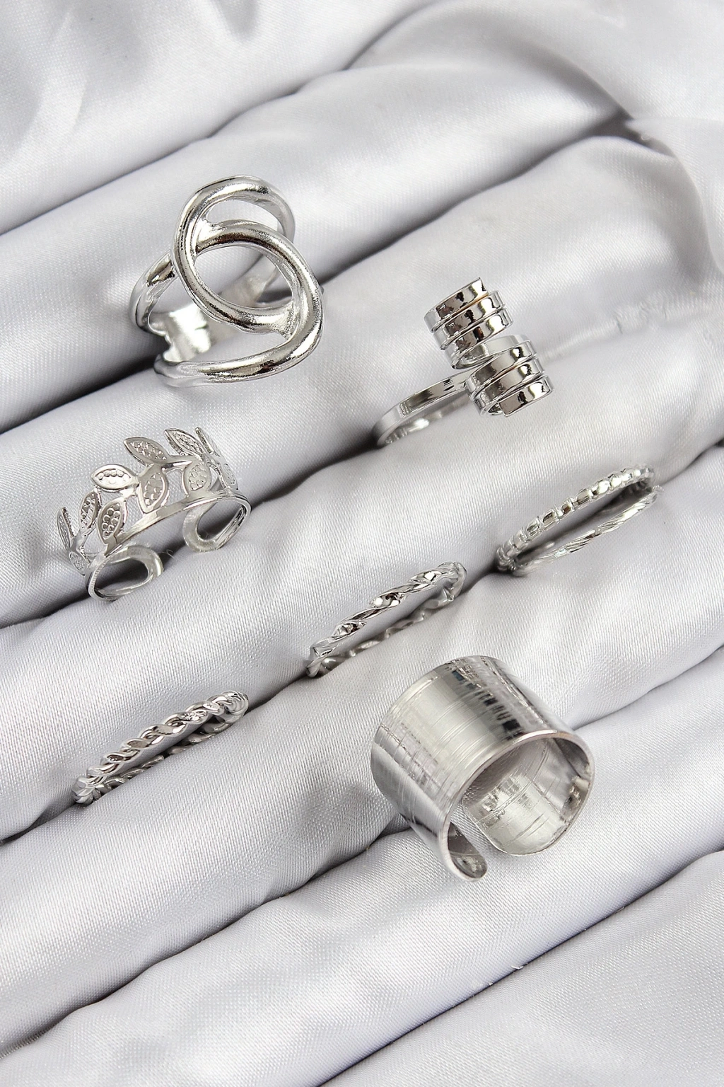 BFS Pirinç Yaprak Model Gümüş Renk Kadın Yüzük Kombin Set