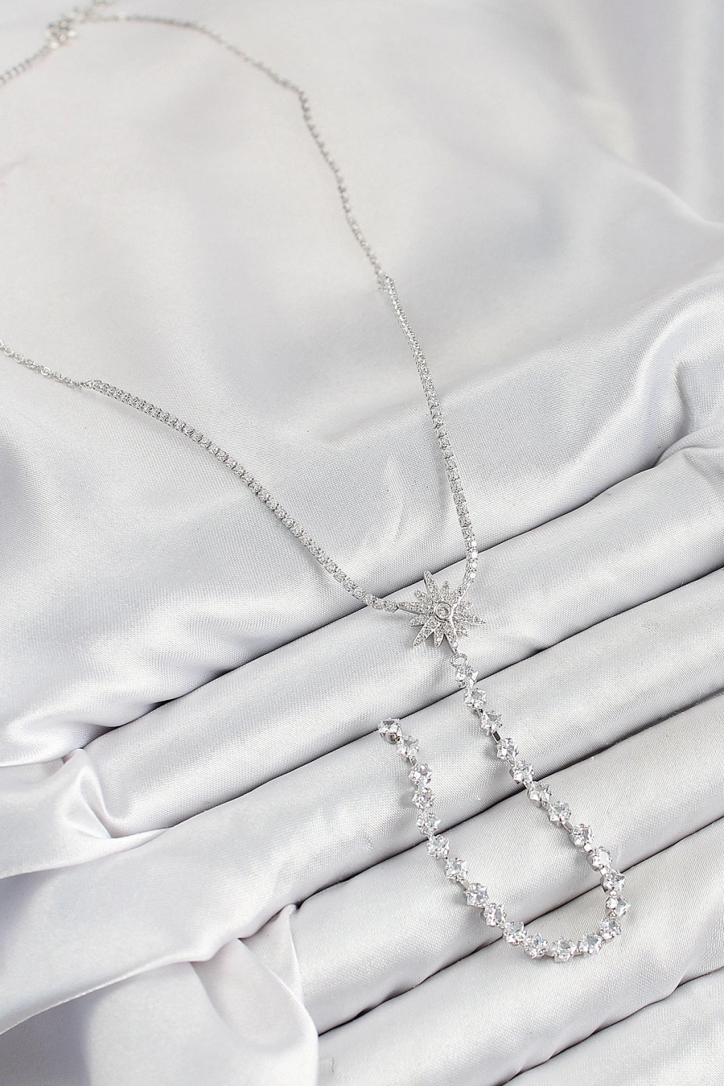 BFS 316L Çelik Zincir Gümüş Renk Kutup Yıldızı Model 60 cm Zincir Kadın Kolye