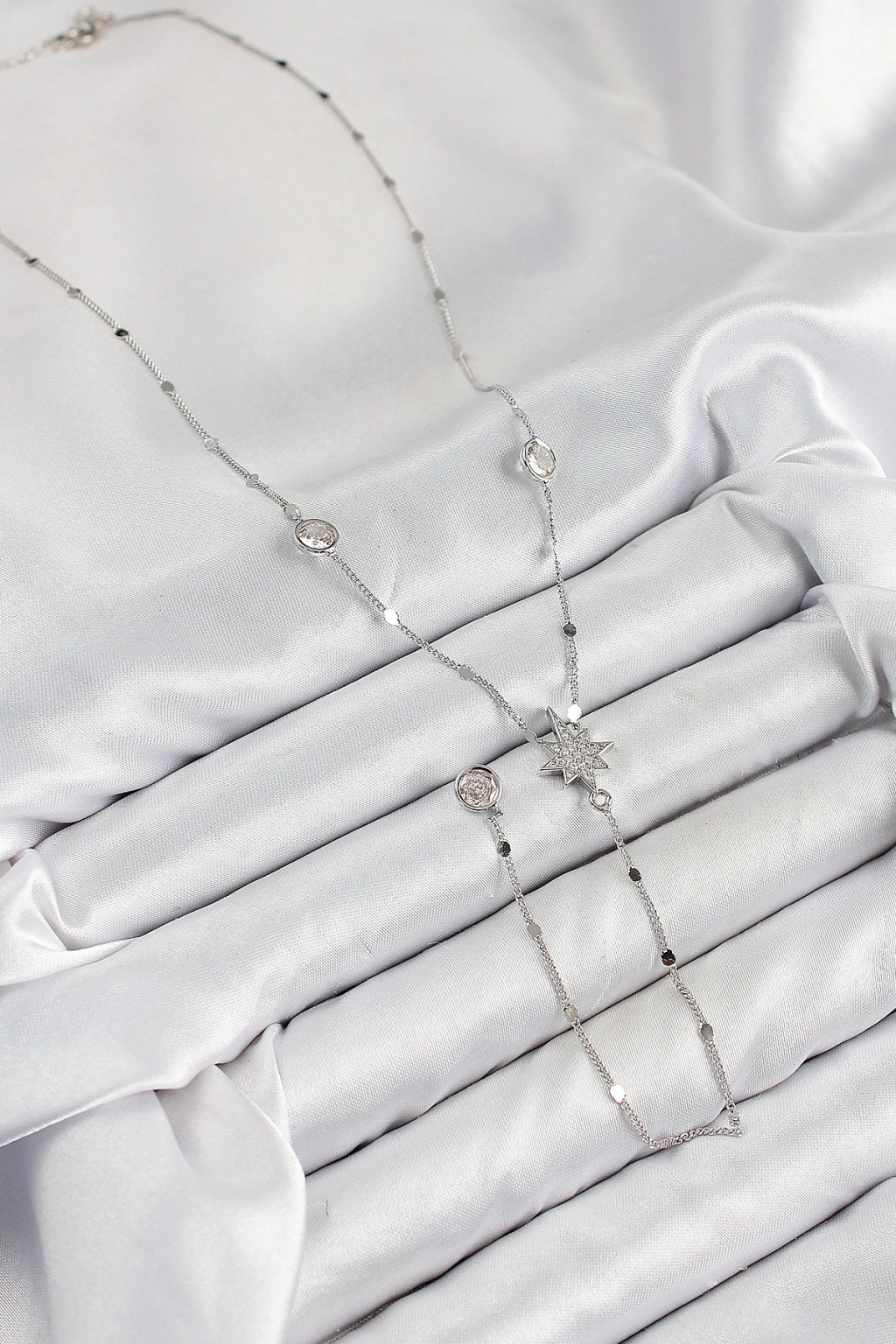 BFS Pirinç Zirkon Taşlı Kutup Yıldızı Model Gümüş Renk Y Kolye